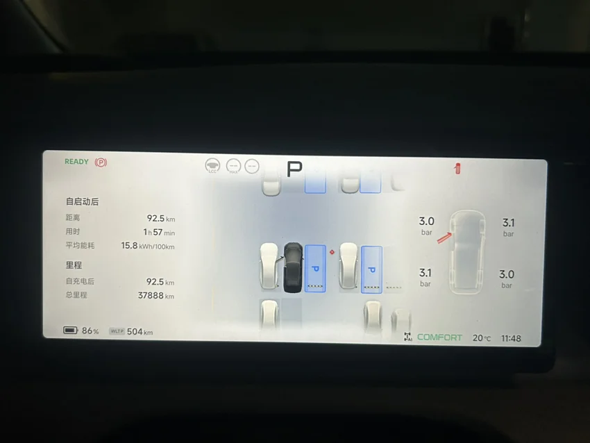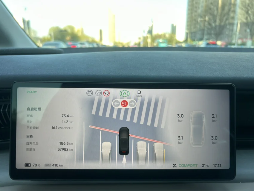 早上满电出发,表显wltp续航585km,全程开着22度空调,高速电耗稳定在16左右,市区路段也才14上下。单程跑了92.5km,续航还剩504km,加起来是596.5km,往返共跑了186km,表显还剩410km续航,这样加起来还是596km,直接跑出了反向虚标,这电控和续航太扎实了👍🏻@鹏友大管家