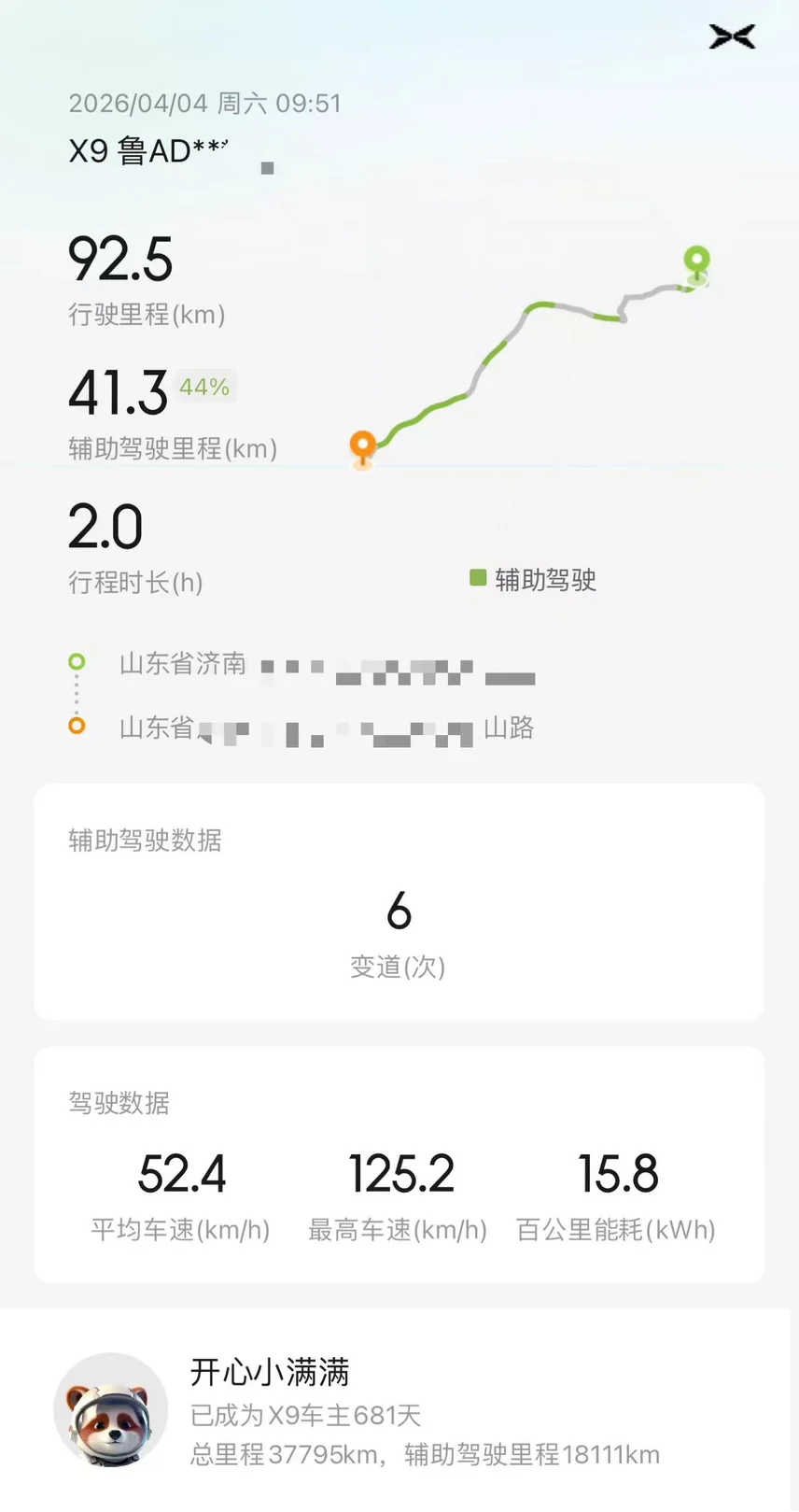 要知道这可是满载6人、全程空调、高速+市区混合路况,这个电耗表现真的超出预期。从济南出发,一路开着NGP智驾,解放双脚,老人坐在第二排舒服座椅,孩子们在后排空间也完全不挤。