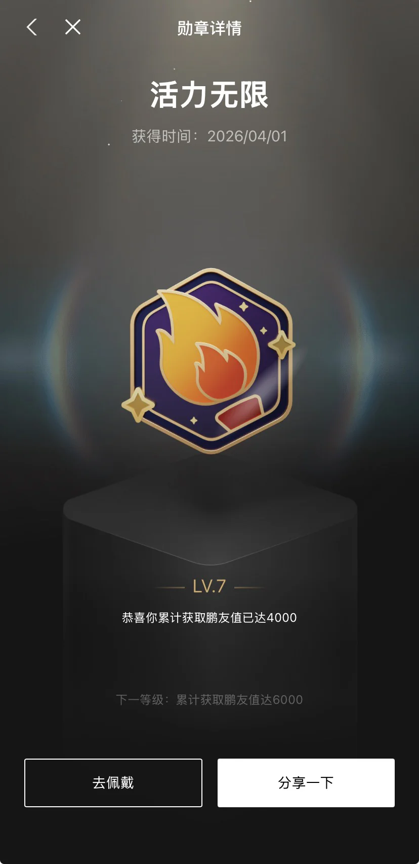 解锁“活力无限”LV.7!🔥 4000 鹏友值,是每一次点赞、评论和分享的积累。在社区里,我们不仅是车主,更是志同道合的朋友。继续燃烧热爱,向 LV.8 进发!