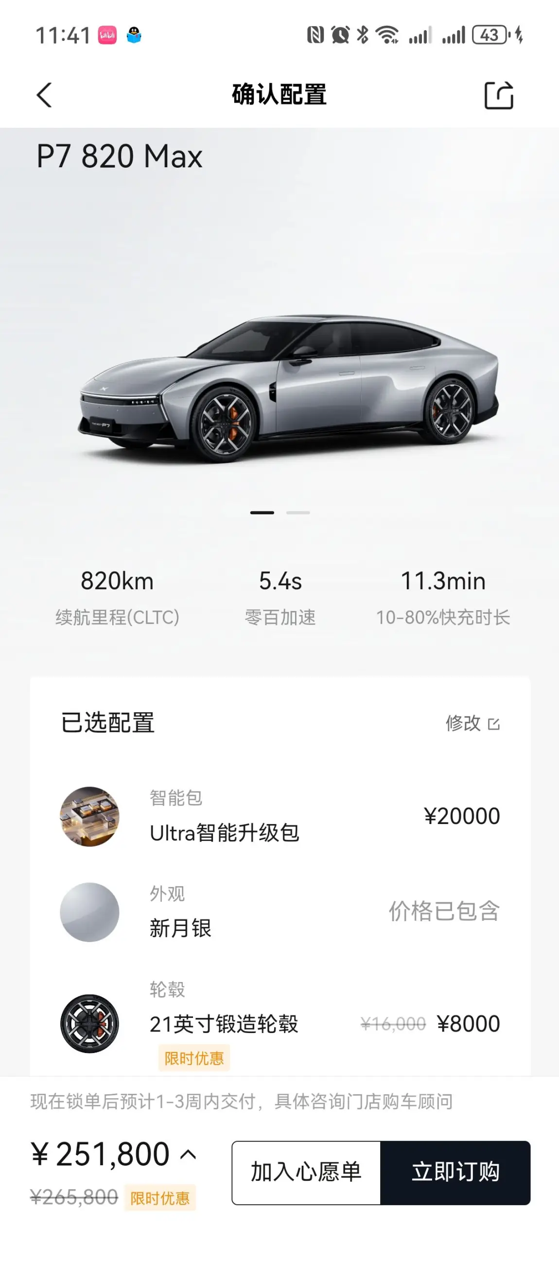 可惜新苏7刚刚上市,很多政策不完善,最后还是退订了。还有是因为新苏7的空间不太理想。P7也是因为这个原因,所以排除了。但该说不说P7的颜值还是非常顶的,也是让我非常犹豫,最后和P7+相比较,最后选了P7+。