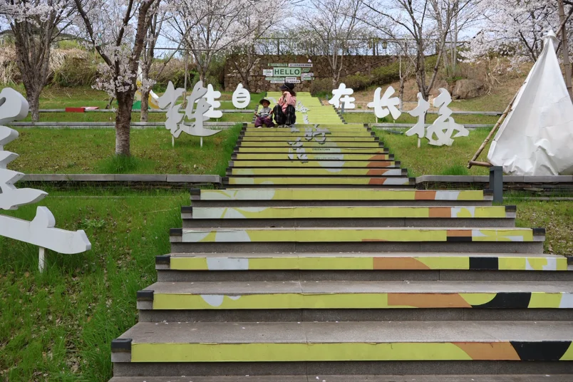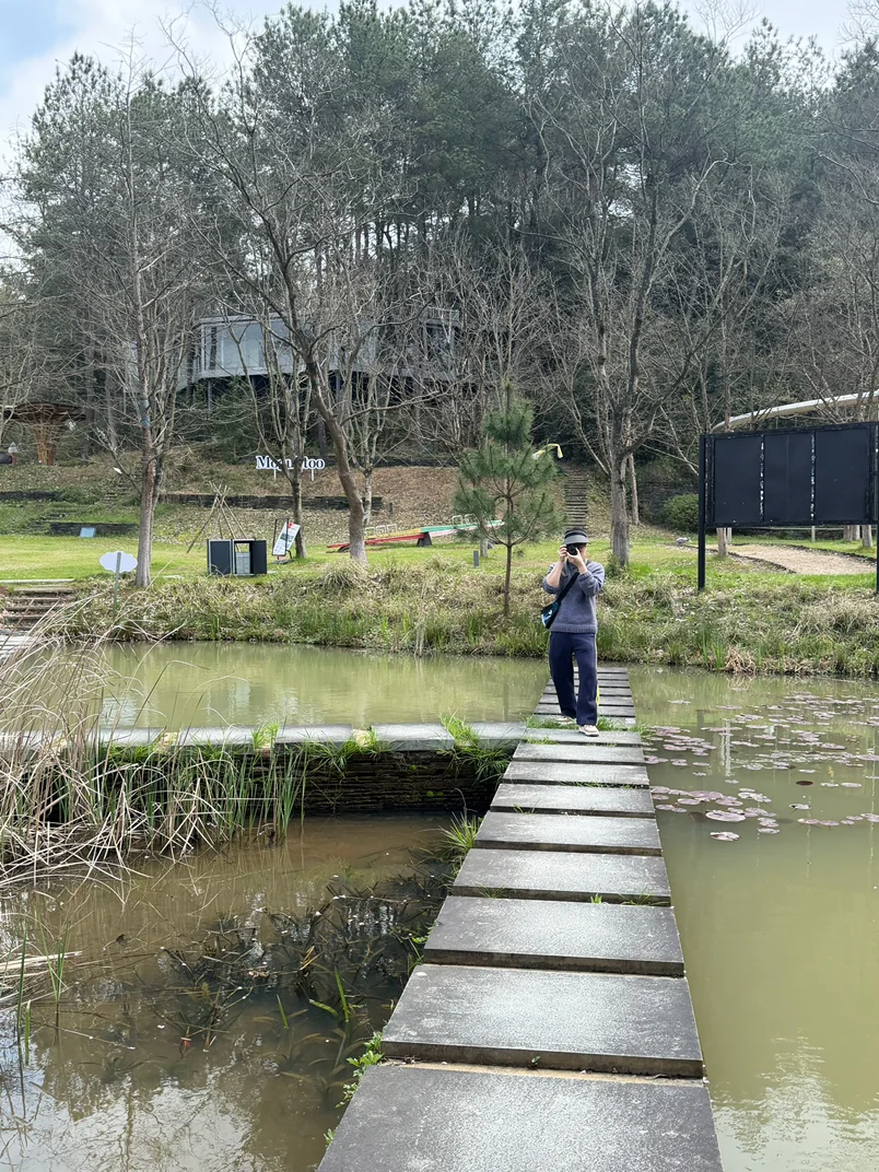 桃花源园区本身也超美,正值百花盛开的季节,桃花、樱花、梨花竞相开放,粉的、白的、红的,漫山遍野都是花,一步一景,随便一拍都是大片。除了挖笋,这里还有儿童游乐设施、湖边步道、露营地,设施特别全,要是时间充裕,玩上大半天都没问题。