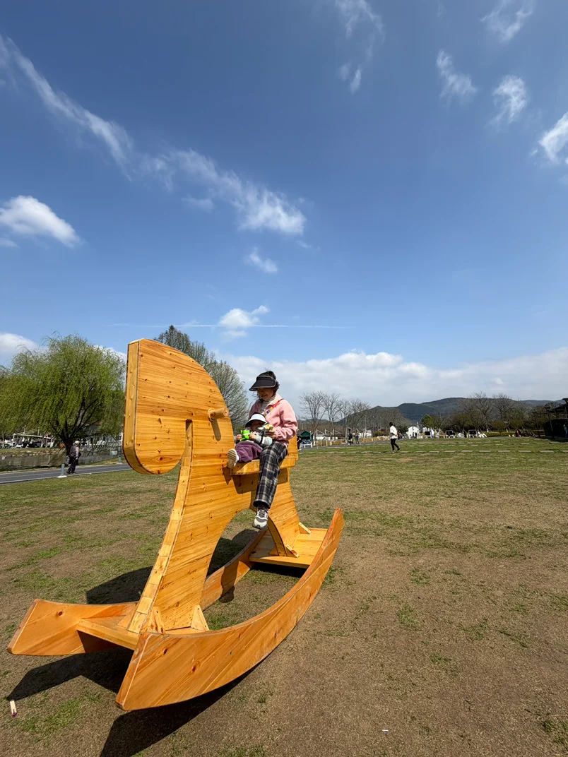 村里游客不少,但一点不嘈杂,反而很有烟火气。我们沿着干净的村道散步,逛了两山石碑、余村印象图书馆,图书馆门口有大片草坪和稻田,宝宝在草地上追泡泡、跑跳,开心得不得了。村里还有不少特色小店、咖啡馆、餐厅,累了就找家店坐坐,喝点东西,尝尝安吉本地小吃。这里既有田园风光,又有完善的休闲配套,孩子能自由奔跑玩耍,大人也能感受美丽乡村的惬意,节奏慢悠悠的,特别舒服。