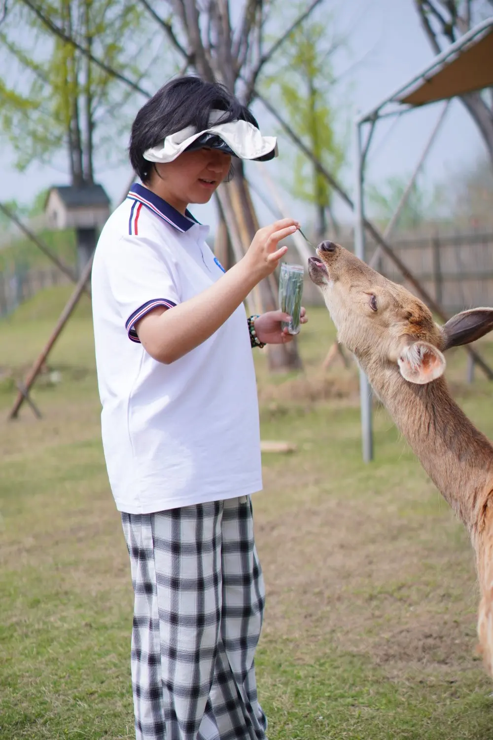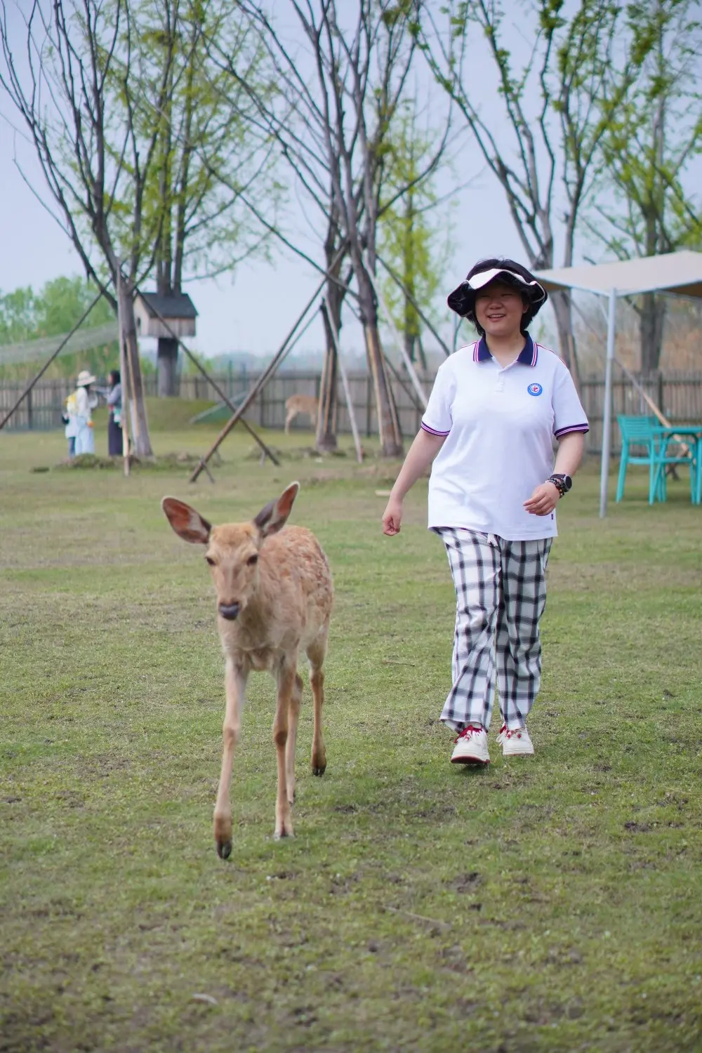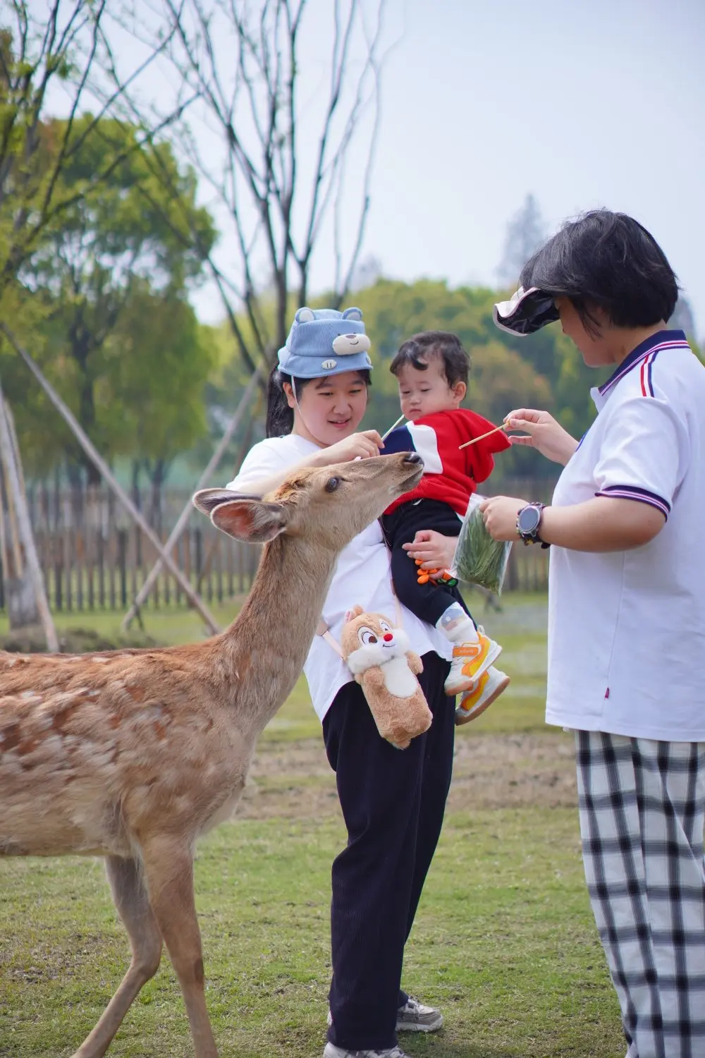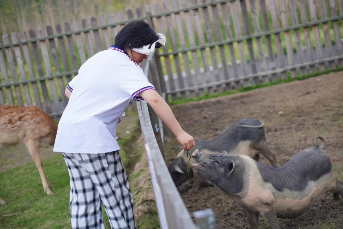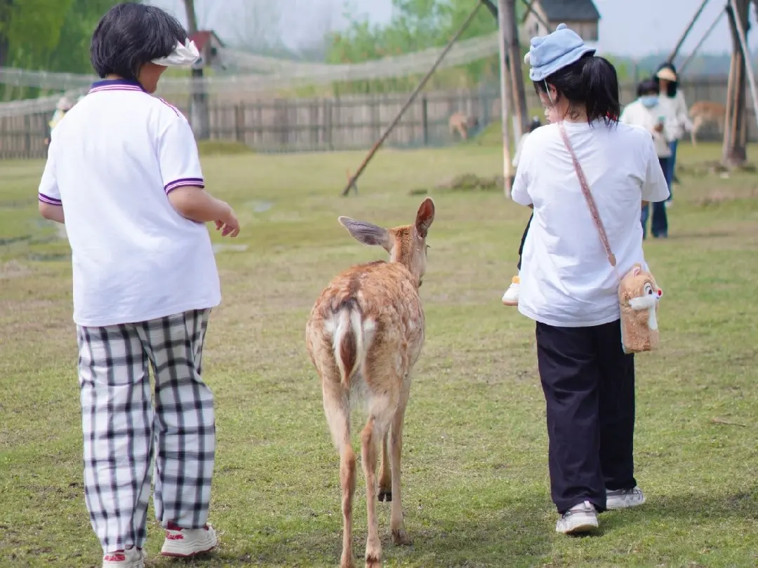 最让人惊喜的是温顺可爱的小鹿。它们一点都不怕人,慢悠悠地走到身边,眼神温柔又澄澈,孩子小心翼翼地伸手抚摸,和小鹿近距离互动,笑声清脆又欢快。小鹿温顺的模样,成了孩子此行最难忘的回忆,快门按下,定格下这温馨的一幕幕。
