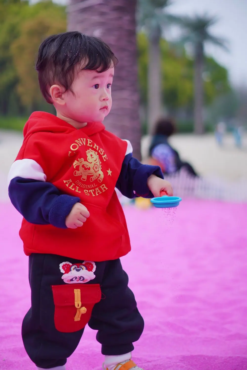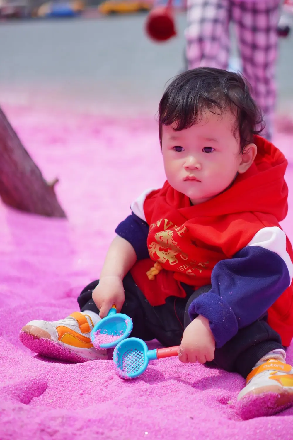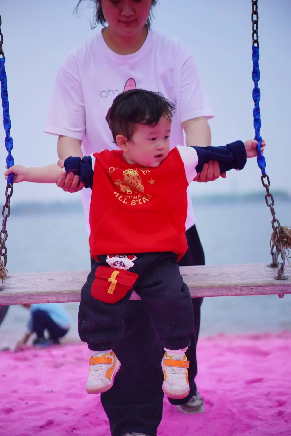 紧接着来到沙滩公园,这片粉色沙滩瞬间戳中了所有人的少女心,浪漫感拉满。粉色的沙粒搭配湛蓝的湖水,仿佛闯入了梦幻的粉色海洋,随手一拍都是氛围感满满的大片。孩子看到沙滩更是兴奋不已,拎着小铲子、小桶,一头扎进沙堆里,堆沙堡、挖沙坑,玩得不亦乐乎,久久不愿离开。阳光洒在湖面上,波光粼粼,一家人伴着微风,在这片浪漫的粉色沙滩上漫步,时光都变得温柔起来。