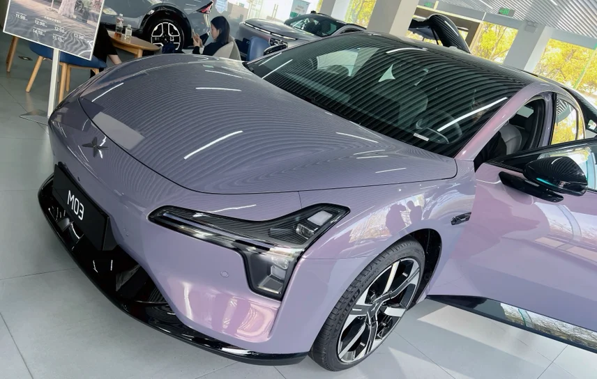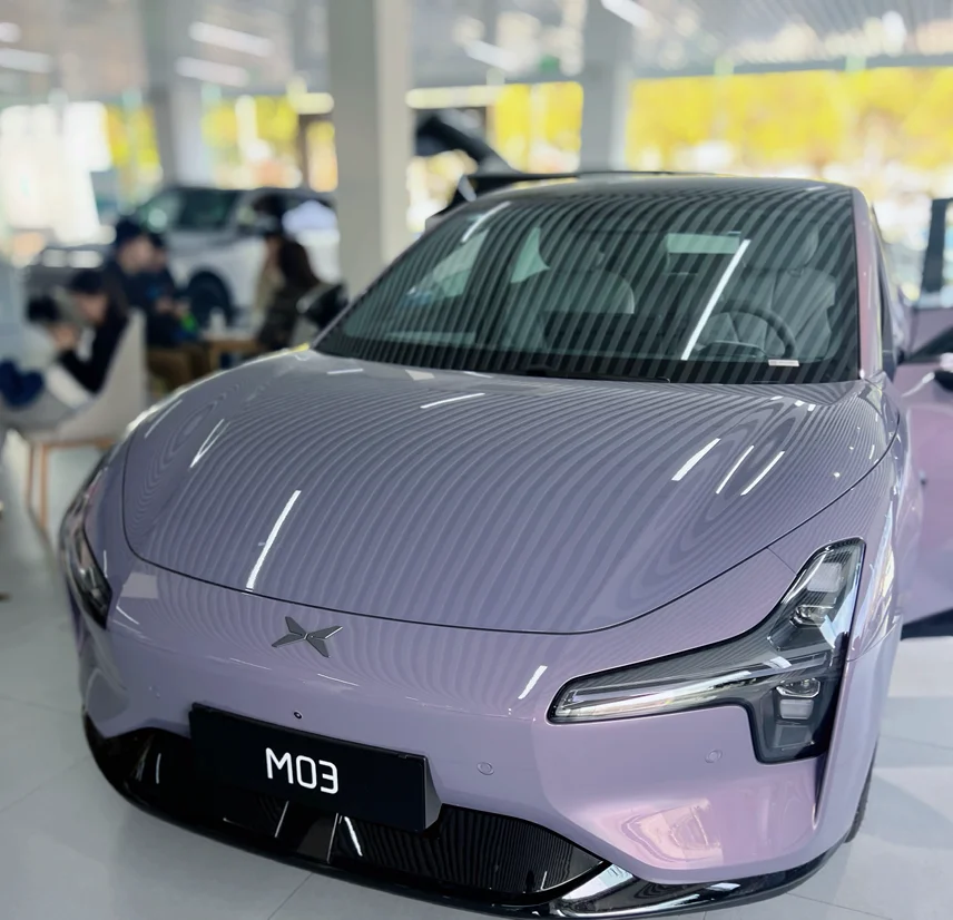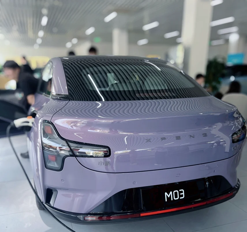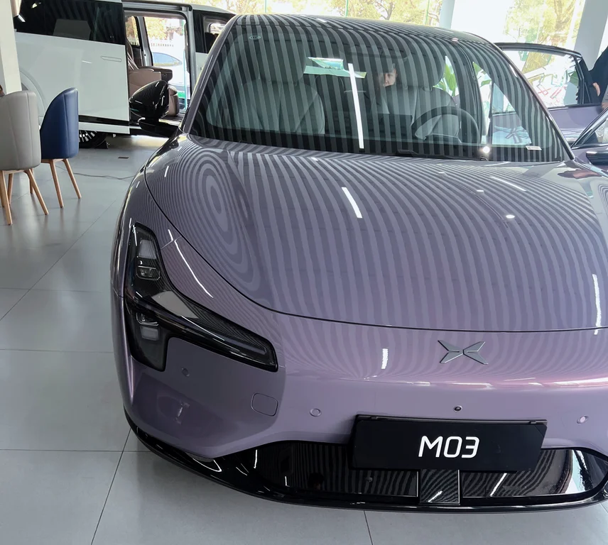 新款小鹏MONA发布后,特意挑了个工作日,去上海松江的小鹏销售中心看2026款MONA M03,想着人应该不多。一进门,虽然是工作日,但是展厅内人潮涌动,挤满了看车的人,展厅C位停着一台罗兰紫的MONA,光线打上去,整个车身的颜色层次一下子就出来了。