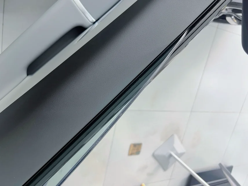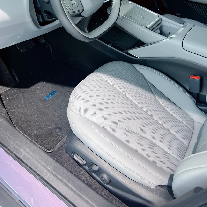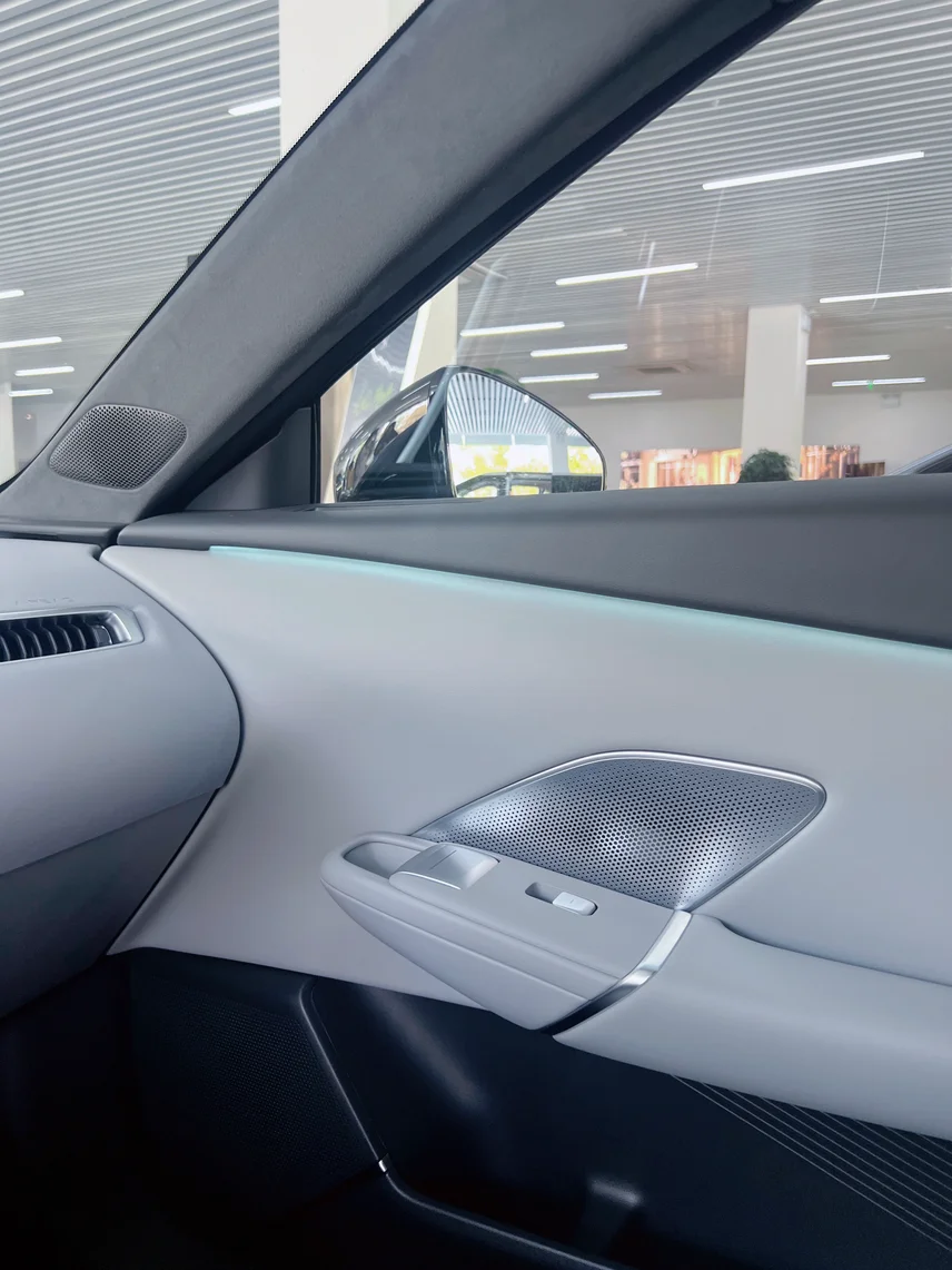 新款MONA的座椅明显加长加厚了,前排还多了14点按摩功能,坐着很舒服。前门换上了双层夹胶隔音玻璃,加上RNC主动降噪,关上车门展厅里的嘈杂声一下就隔绝了大半。抬头看,天幕换成了双层镀银Low-E材质,紫外线隔绝率99.97%,夏天开车终于不用担心被晒得头顶发烫了。