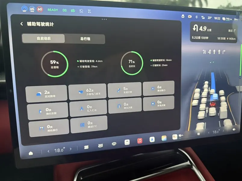 · 71%时长开着辅助驾驶(14分钟/21分钟)