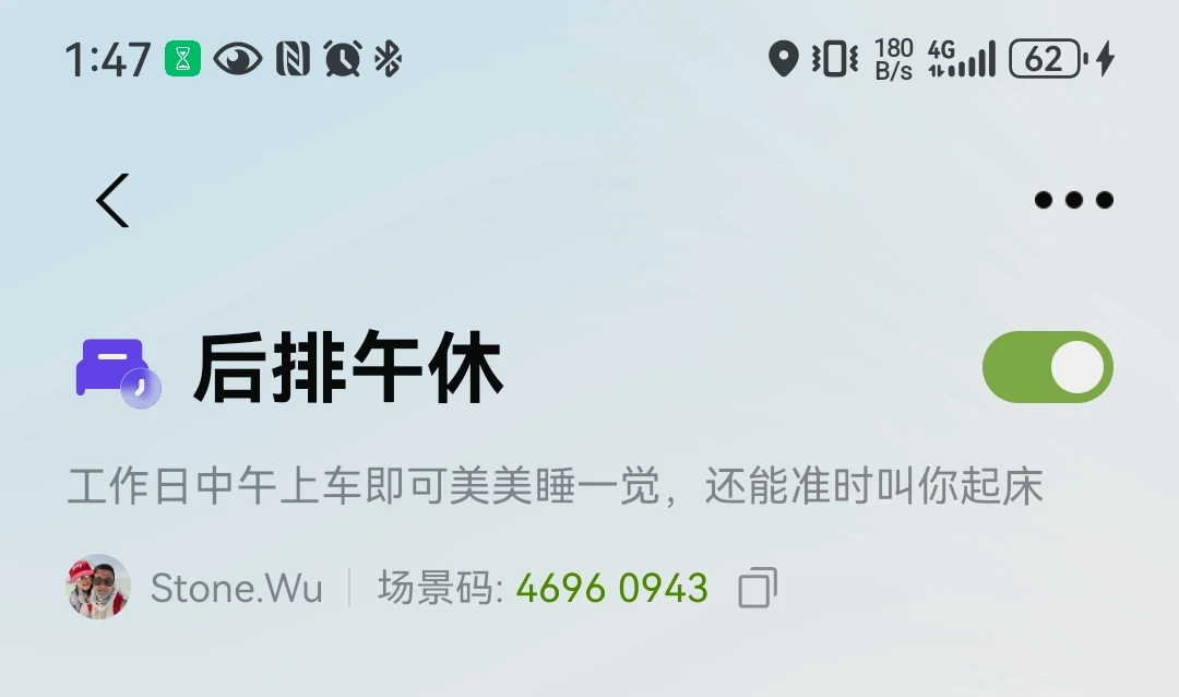 自从提车X9后,我这个打工人每天中午都在车上午休,自己定制了个午后休息智慧场景,工作日中午上车自动触发,车内瞬间切换成舒适午休模式,安安静静眯一觉,到点小P自动叫醒,下午满血复活,车载午休的惬意谁试谁知道~
