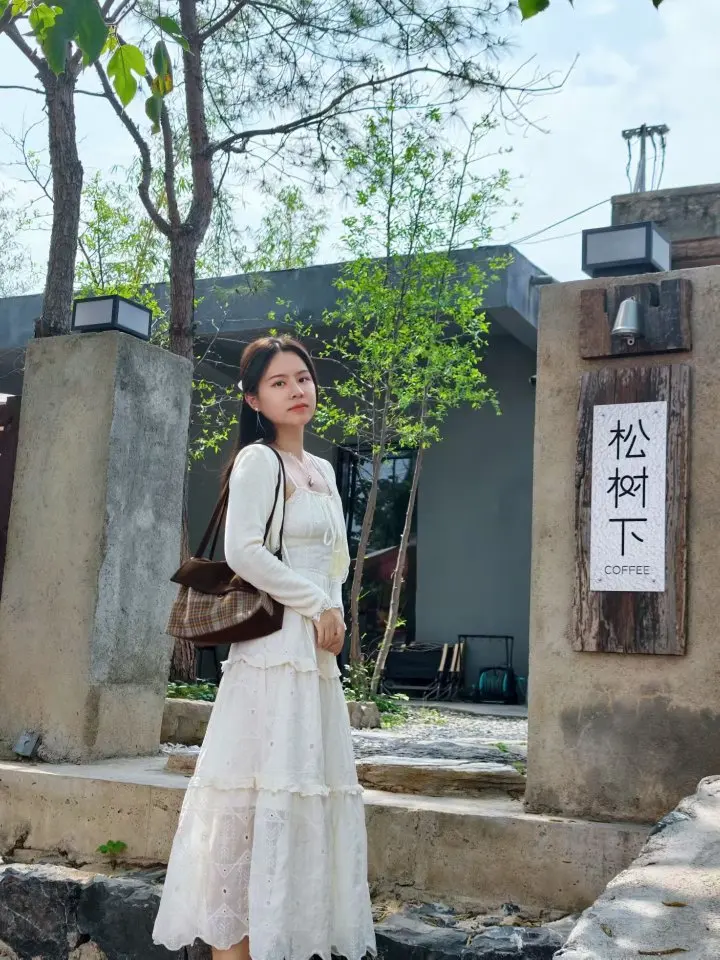 回到贵港,慢生活正式开始! 放下行李第一站,就冲了这家躺在收藏夹里的店——「松树下 COFFEE」。就在一条安静的街边,白裙子配棕褐格子大 挎包,和这里的素净氛围超搭!站在那个复古的木质招牌下,背后是灰墙绿树,铃铛偶尔轻响,随手一拍就是自带松弛感的氛围大片。果然,回到小城的第一件事,就是要把节奏慢下来。