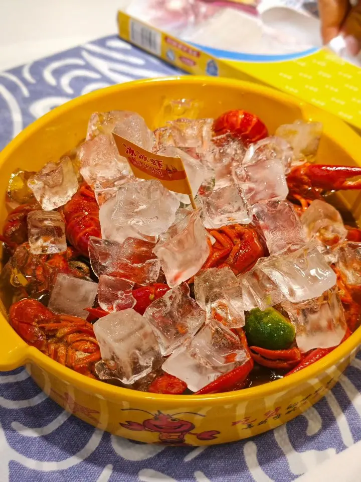 压轴神品必须是这碗——「冰冰虾」! 端上来时我都惊了,堆成小山的龙虾上,竟然盖满了晶莹剔透的大块冰块!插着小旗子可可爱爱。这叫一个地道的“冰火两重天”!虾肉经过冰镇后,口感变得异常紧实Q弹,麻辣卤汁的滋味锁在里面,吃起来又爽又过瘾,简直是解锁了吃虾新世界!瞬间清盘,一点不夸张。