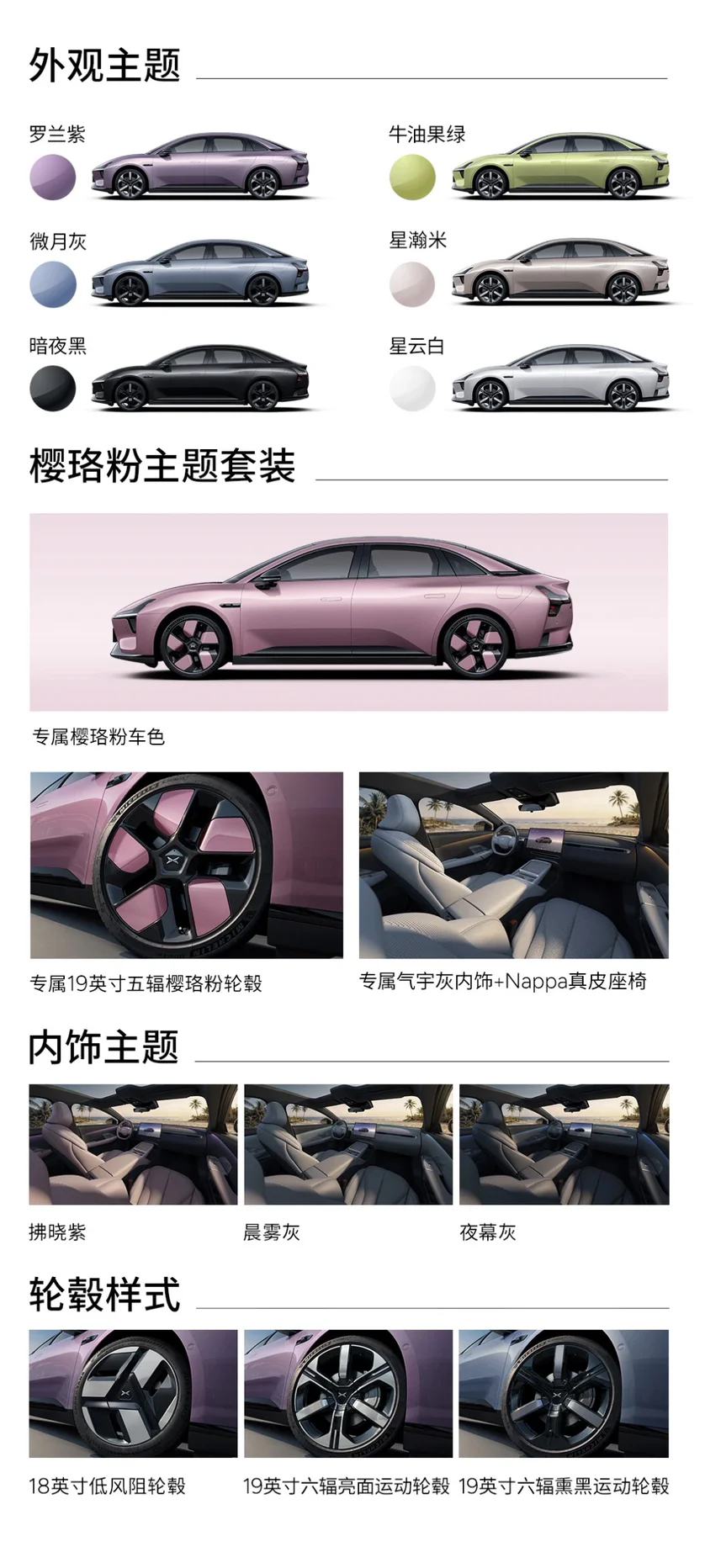 • 潮色出圈,个性不撞款:新增罗兰紫、牛油果绿、樱珞粉三大潮流专属色,搭配微月灰、星瀚米等经典配色,从甜妹到潮酷青年,从通勤到出街,每一种风格都能精准匹配;樱珞粉主题套装更提供专属车色、轮毂与Nappa真皮内饰,把“专属感”直接拉满。