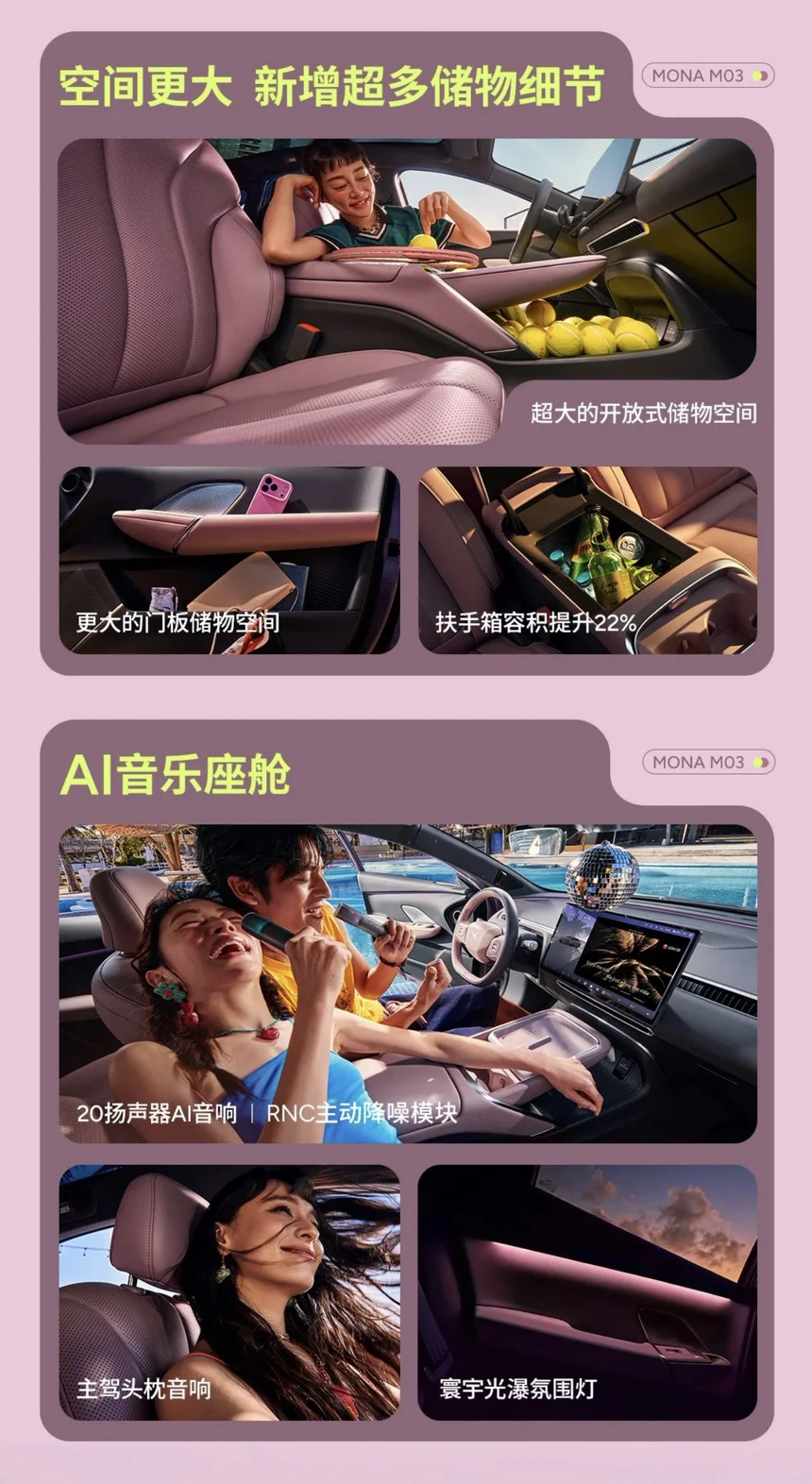 如果说颜值是敲门砖,那内饰与空间的全面升级,就是MONA M03留住用户的核心底气。