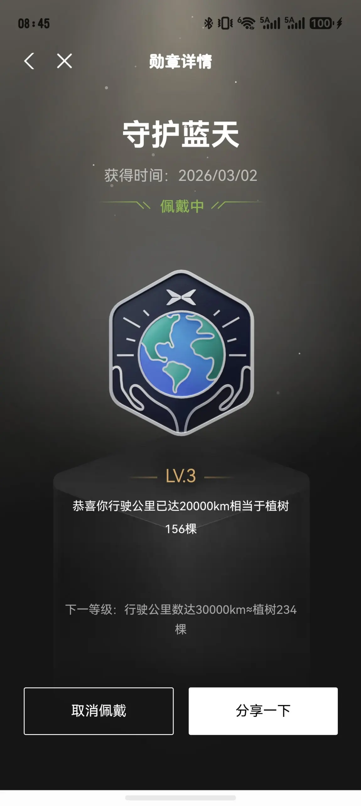 翻看小鹏APP里的勋章墙,12枚勋章整整齐齐地排列着,每一枚都像是一段旅程的注脚。但此刻,我最想“晒”的,是刚刚佩戴上的那枚——守护蓝天勋章。
