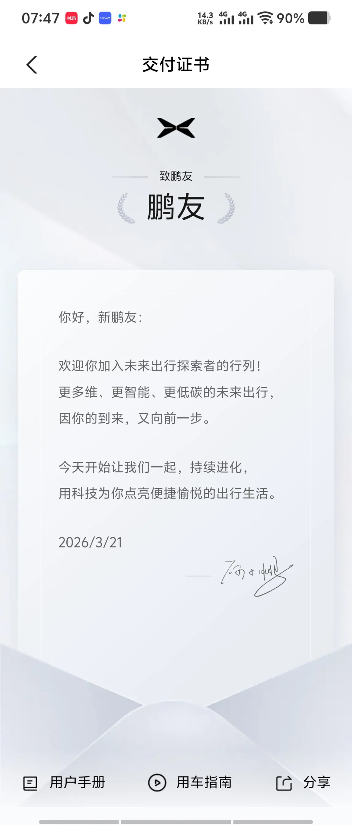 本身我就是小鹏的老车主,在21年就加入了小鹏大家庭,在小红书和抖音的种草下,在26年叒叒提了纯电 X9 Ultra