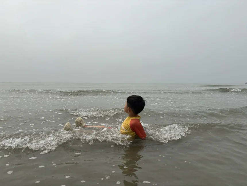 充电情况是充满就跑的话,全程高速,剩余20%左右的电量,基本上可以跑280公里,不得不说,高速充电太贵啦,加服务费1块5一度电,加满需要小100块了,路上大概补给了3次电,这次出行我们基本上80%用的智驾,需要精神集中关注前面以及车外的情况,不能说完全让他自己开,偶尔还是需要接管一下,智驾让我们轻松的就是,脚没那么累,一口气开到距离防城港还有200来公里的服务区,就开始堵车了,那会已经晚上11点左右了,我们想着干脆就在服务区睡一晚得了,因为这次我们出来就没打算住酒店,带着充气床垫的,我和家属分工协作,他铺床,我烧开水,一家人洗漱了,躺在我们的移动床上,看了一会电影就睡觉了,第二天一早睡醒就出发去海边玩水啦!