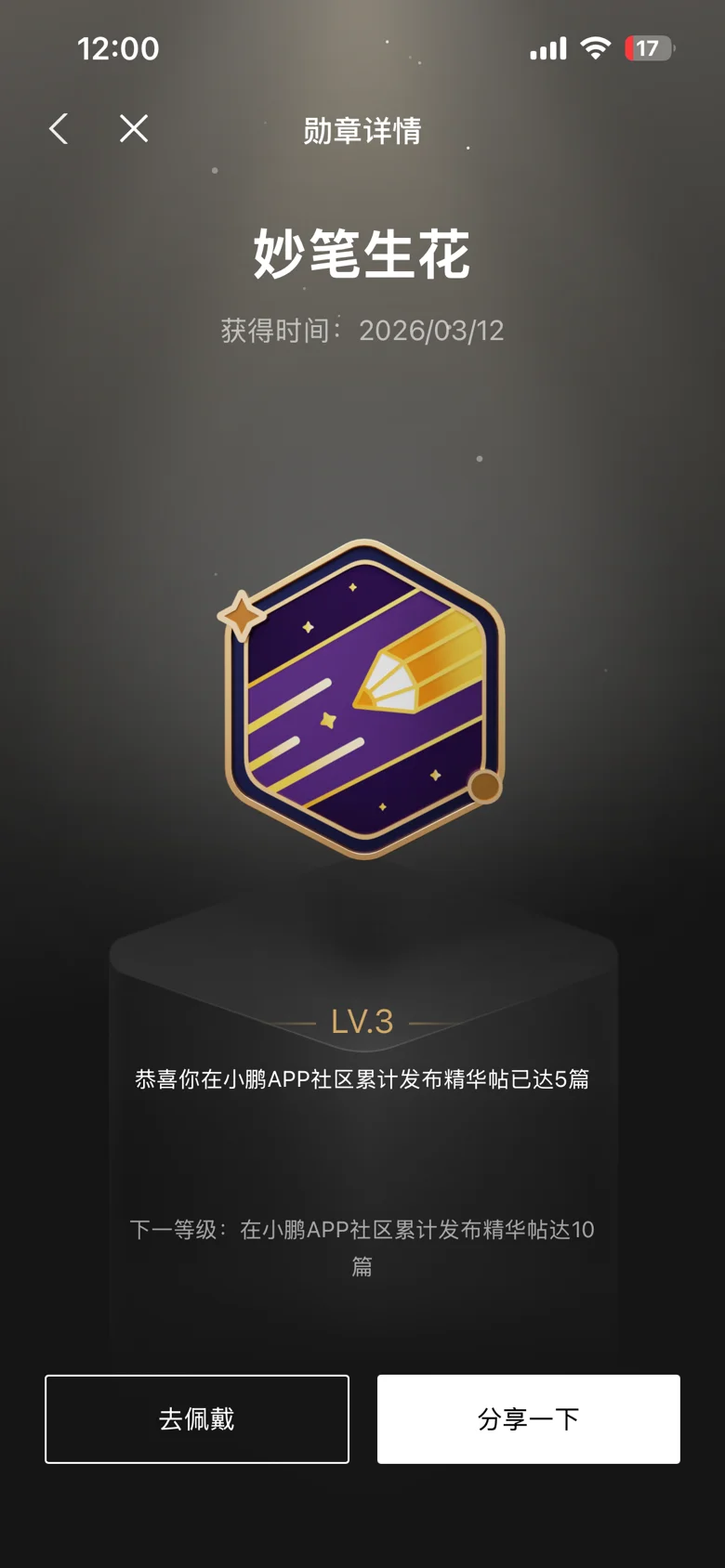慢慢攒下多篇精华帖,还拿下了妙笔生花勋章🎉,比起勋章,更珍贵的是认识了一群志同道合的鹏友,一起聊车、分享生活,氛围超暖~