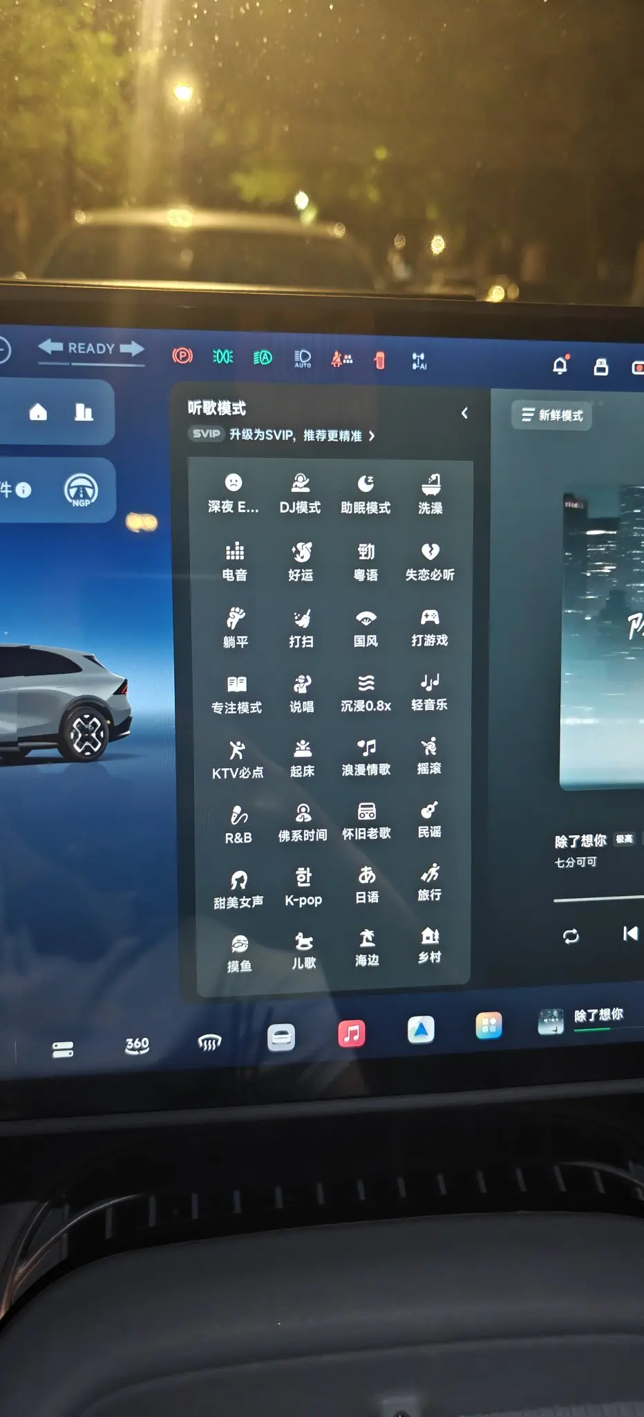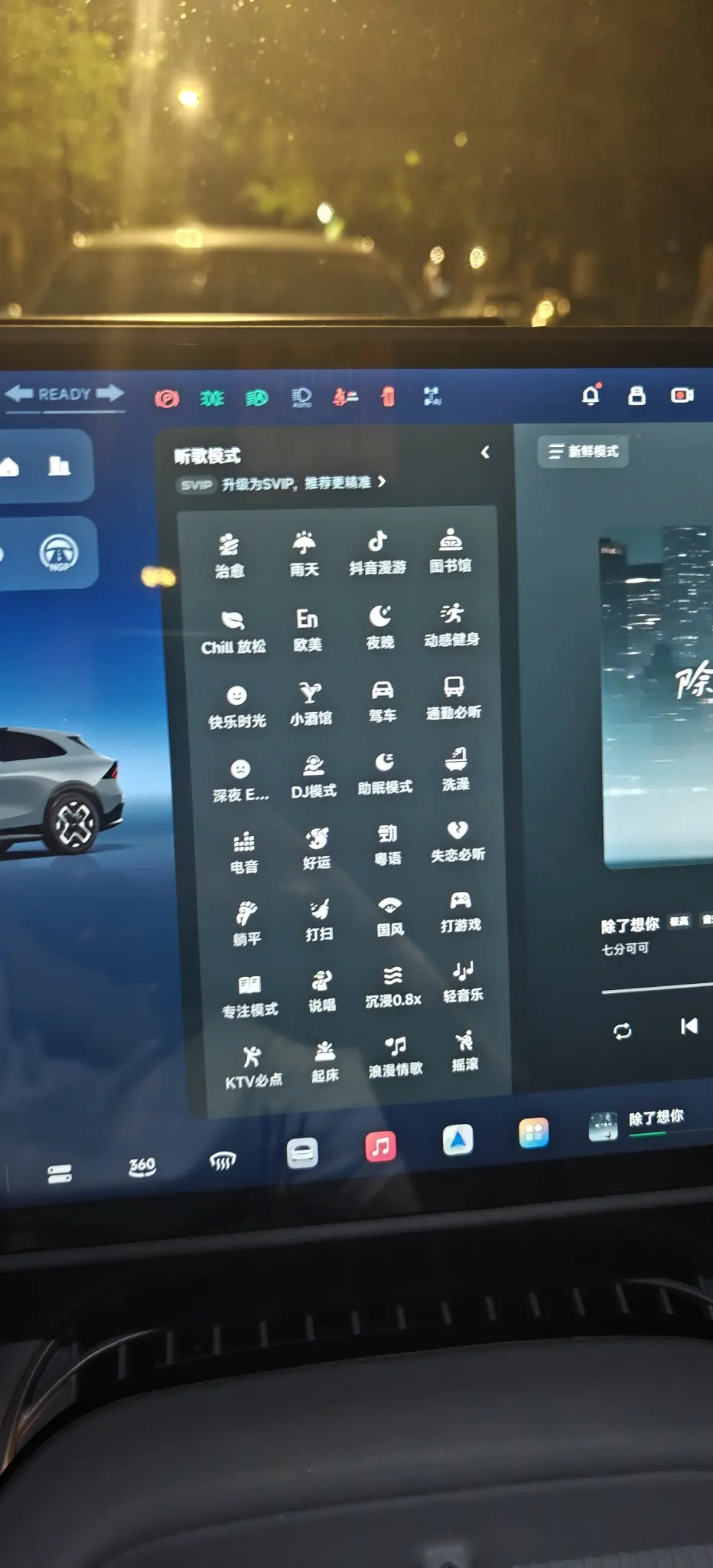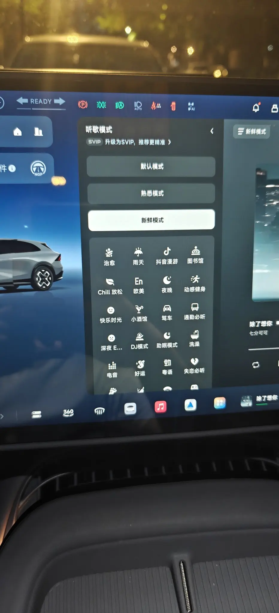 我们小鹏的座舱音响本身就有着极强的声场塑造力,而汽水音乐的音效调校,完全把这套音响的潜力发挥到了极致。打开适配的音效模式,立体声的包裹感瞬间拉满,人声通透清澈,低音沉稳不轰头,鼓点的节奏感、旋律的层次感都被还原得淋漓尽致,没有多余的杂音,没有失真的破音,就像坐在livehouse的前排,整个座舱都变成了专属的移动音乐厅。