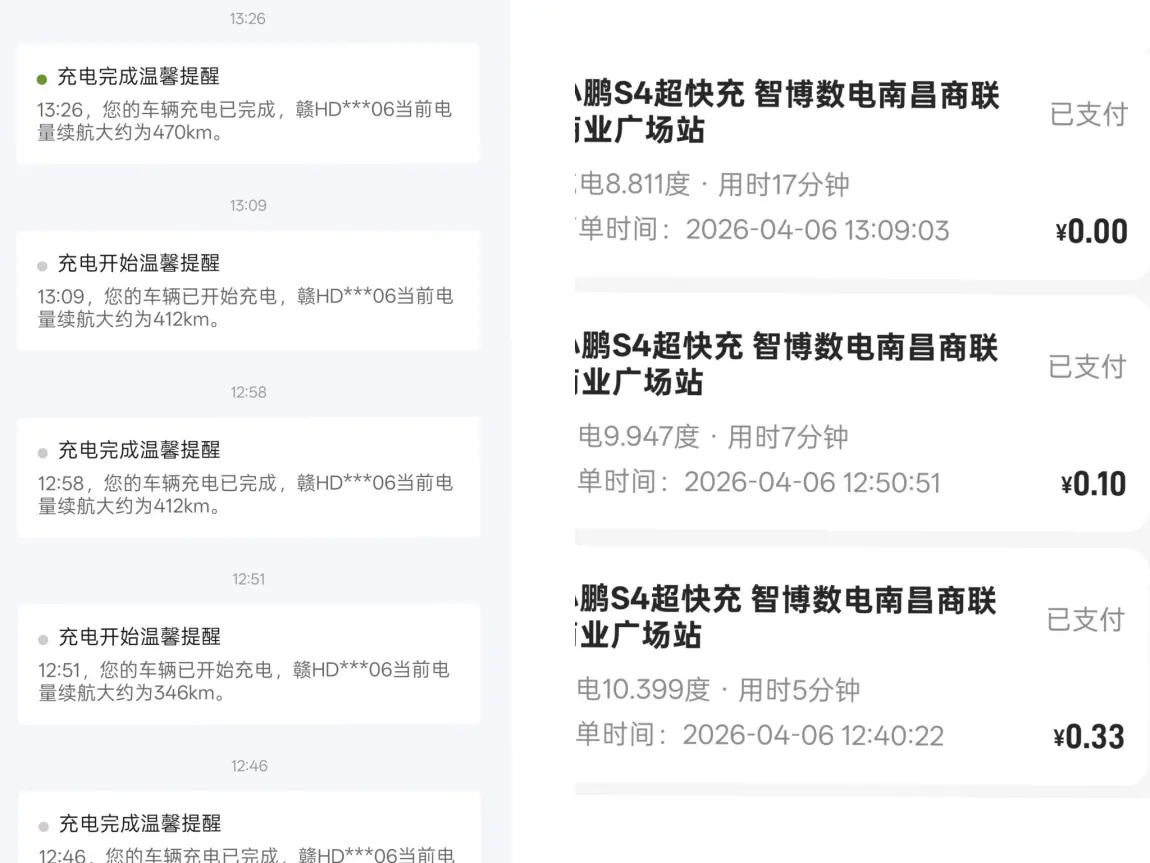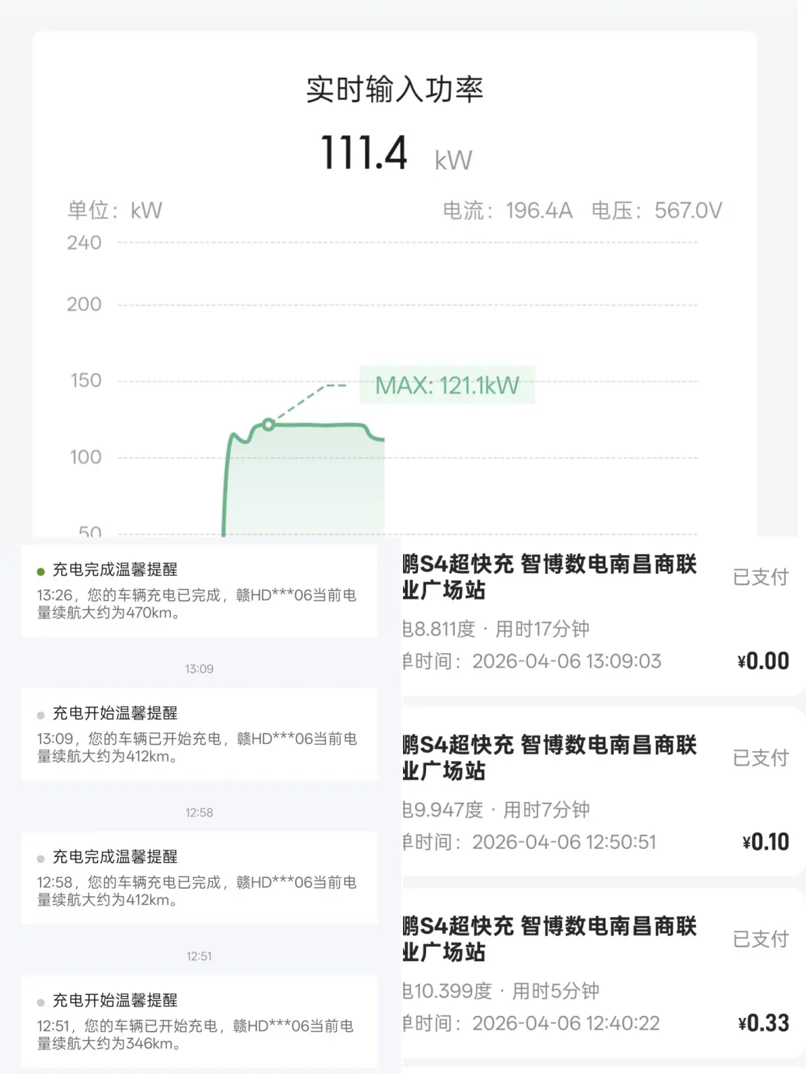 送老婆孩子进店用餐之后,我顺手打开小鹏APP就近找桩,锁定小鹏S00超充智博·南昌商广场站。手上还有多张快电优惠券叠加抵扣,最后只花0.4元,就把电量从59%一口气补到100%,补能成本简直划算到家。