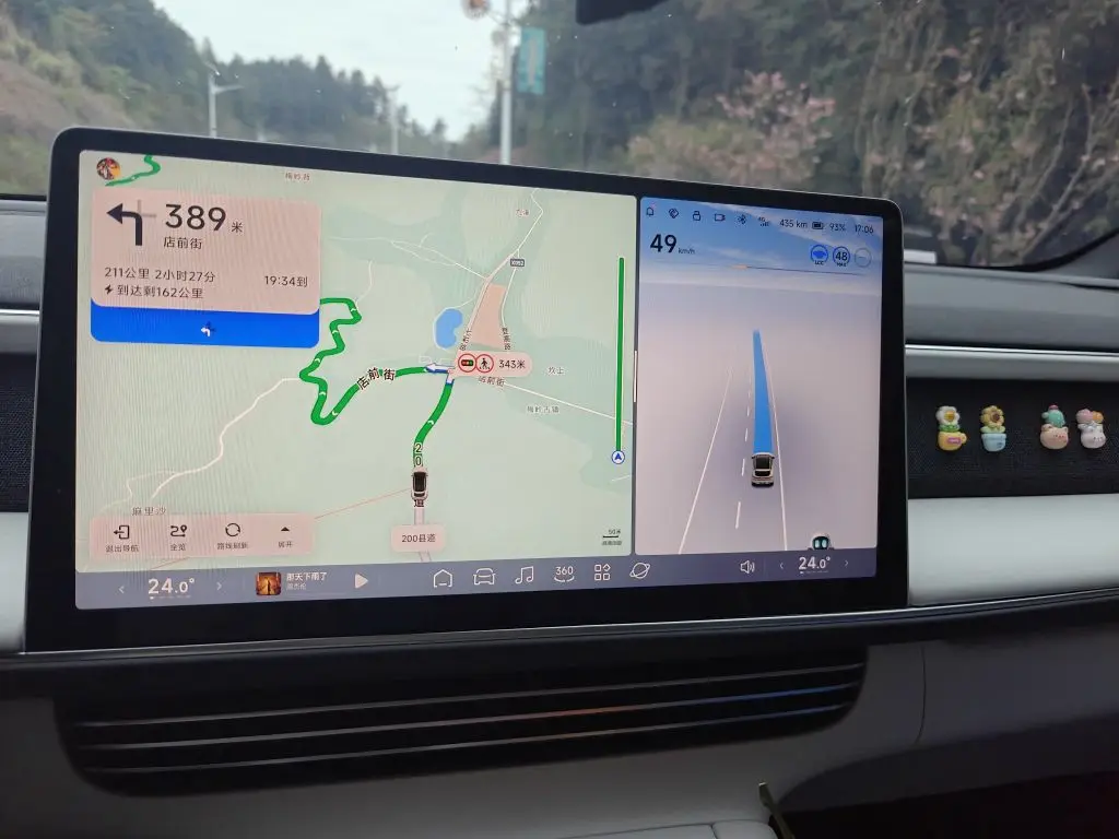我们十一点从丰宁出发,全程74公里,中午12点20多分顺利到店,表显能耗低至13.0kWh/100km,剩余续航282km,比导航预估还多将近10公里续航,一路开得踏实省心。
