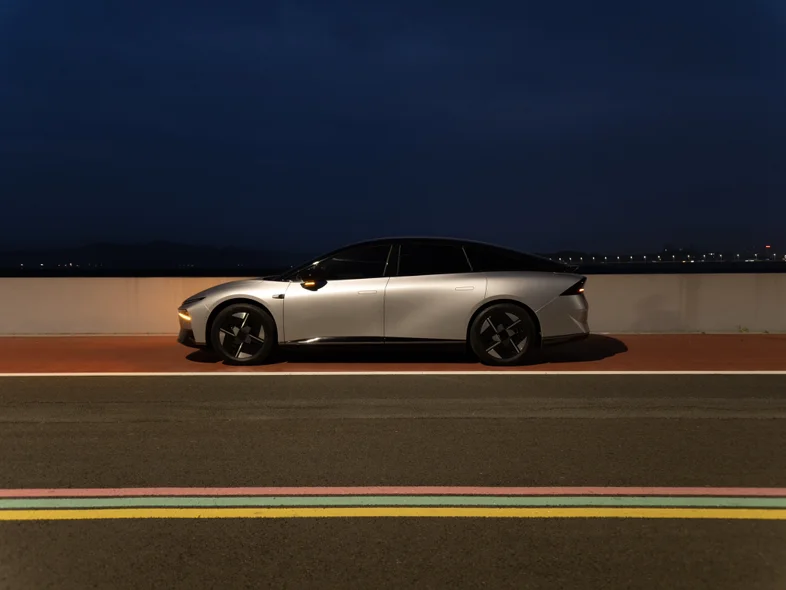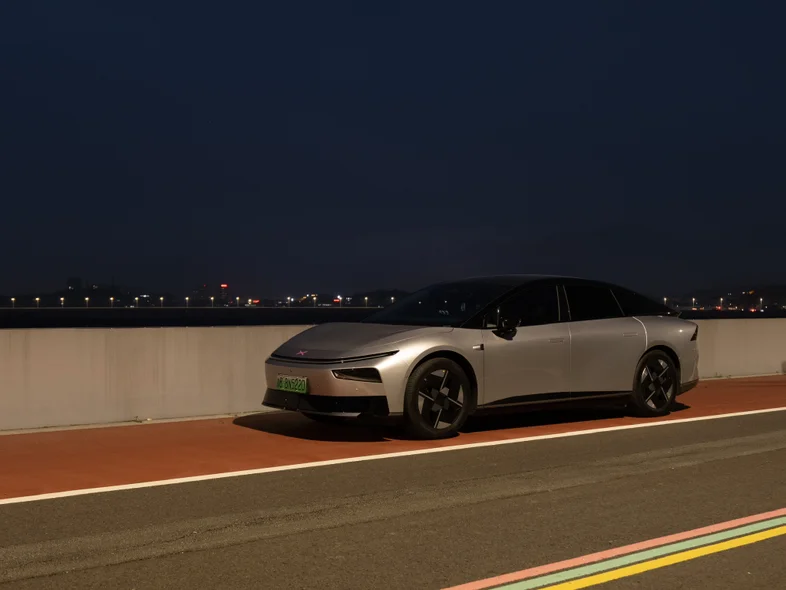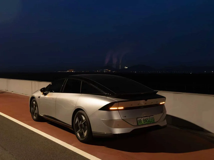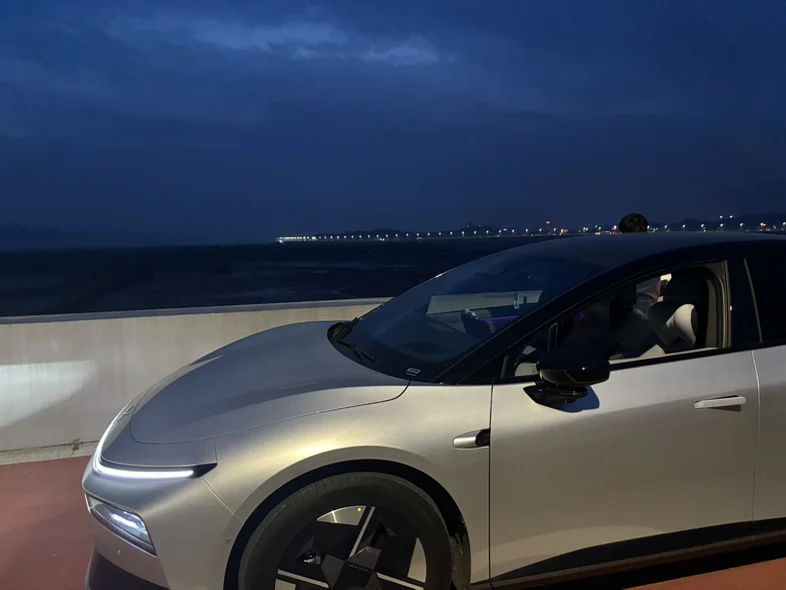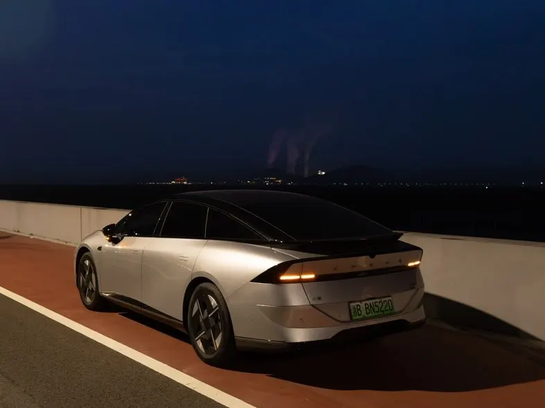 开着P7+缓缓行驶,流线车身和这片朦胧海景适配度满分✨