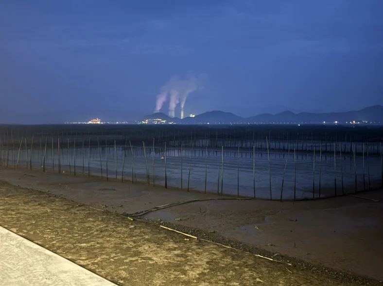 巨大的烟囱不断升腾着烟雾,在夜空里缓缓散开