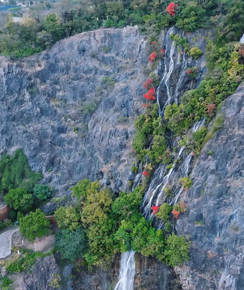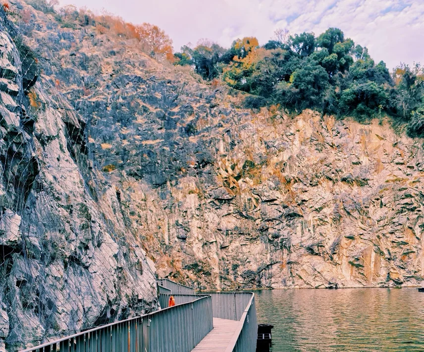 辰山植物园这地方真的越逛越有味道,以前竟是个废弃矿坑,从1905年采石到2000年关停,挖出来六十米深的大坑,后来德国团队设计改造,2010年世博会前开放,现在完全看不出荒废的样子。矿坑花园绝对是重头戏,沿着断壁修的浮桥走上去,脚下是深坑,旁边瀑布从高处砸下来,娃又怕又好奇,攥着我的手不肯放,小模样又可爱又好笑。