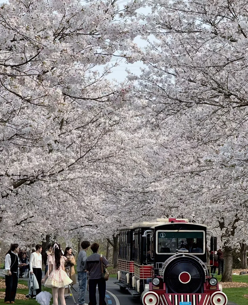 赶上樱花大道的最佳观赏期尾巴也太幸运了,近千米的路,染井吉野樱开得铺天盖地,白中透粉的花瓣密密匝匝挂在枝头,风一吹就飘起樱花雨,氛围感直接拉满。娃蹲在地上捡花瓣,小心翼翼塞进口袋,说要带回去送给她的小伙伴,小小的身影认真又可爱。