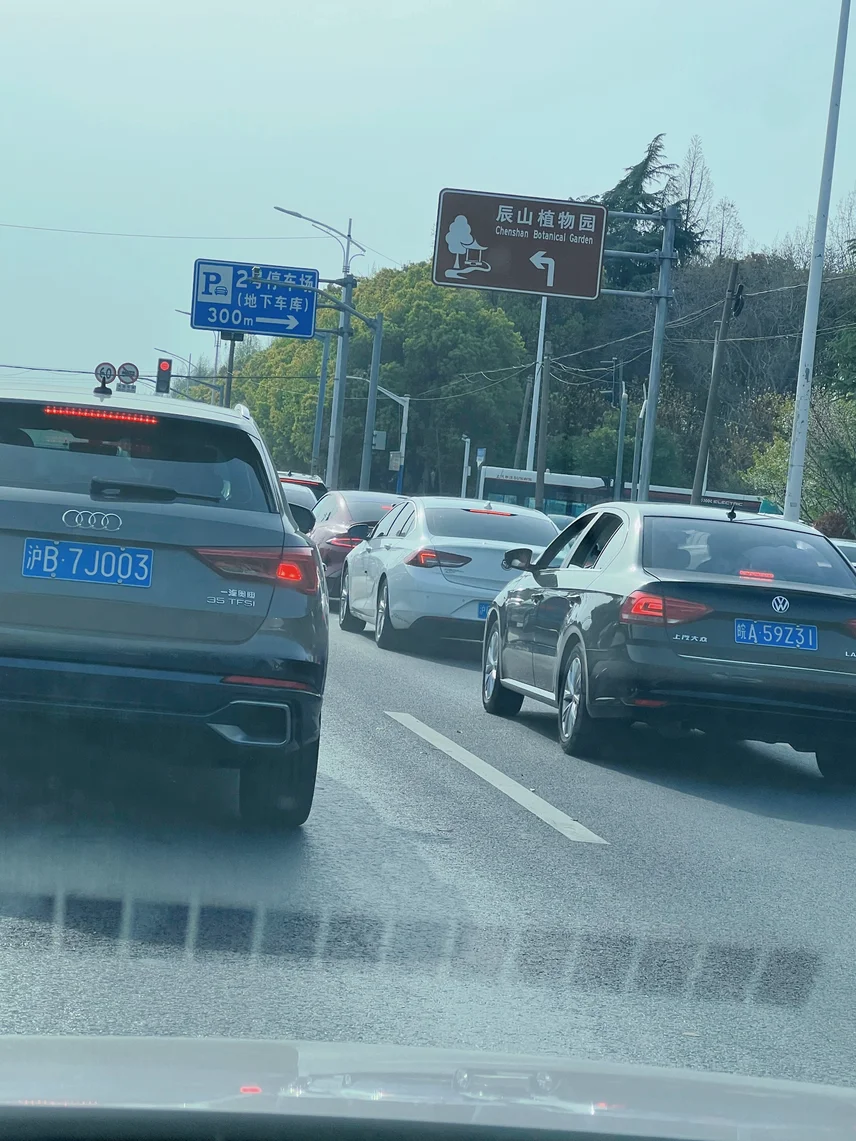 开了快一小时到植物园,老远就看到入口的路堵成了红条条,车流一动不动,换平时我早躁了,结果这次完全没感觉——小P慢悠悠跟着前车,走走停停全自己来,不用我频繁踩刹车油门。我索性把椅背调后,跟着音响里的歌瞎哼哼,堵车的烦躁感一点都没有。