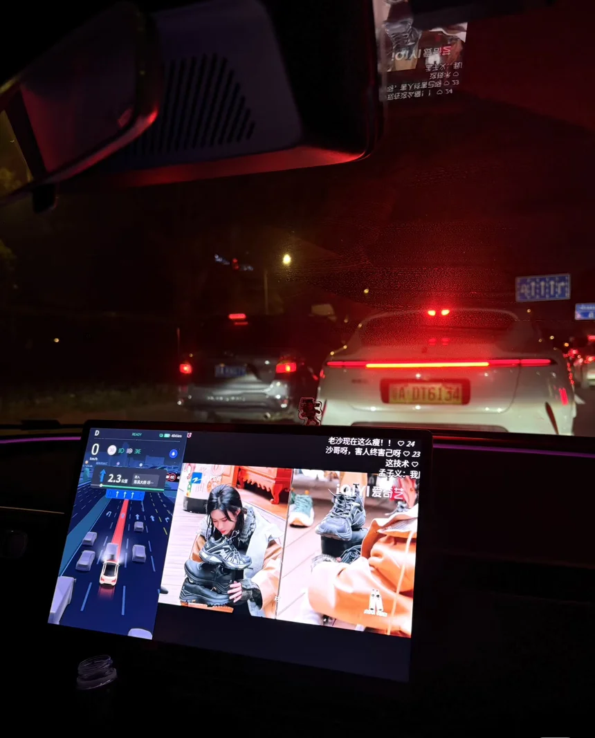 就像图里这样,在地库充电时,窝在车里看剧,氛围感直接拉满,比在外面等车舒服太多了!