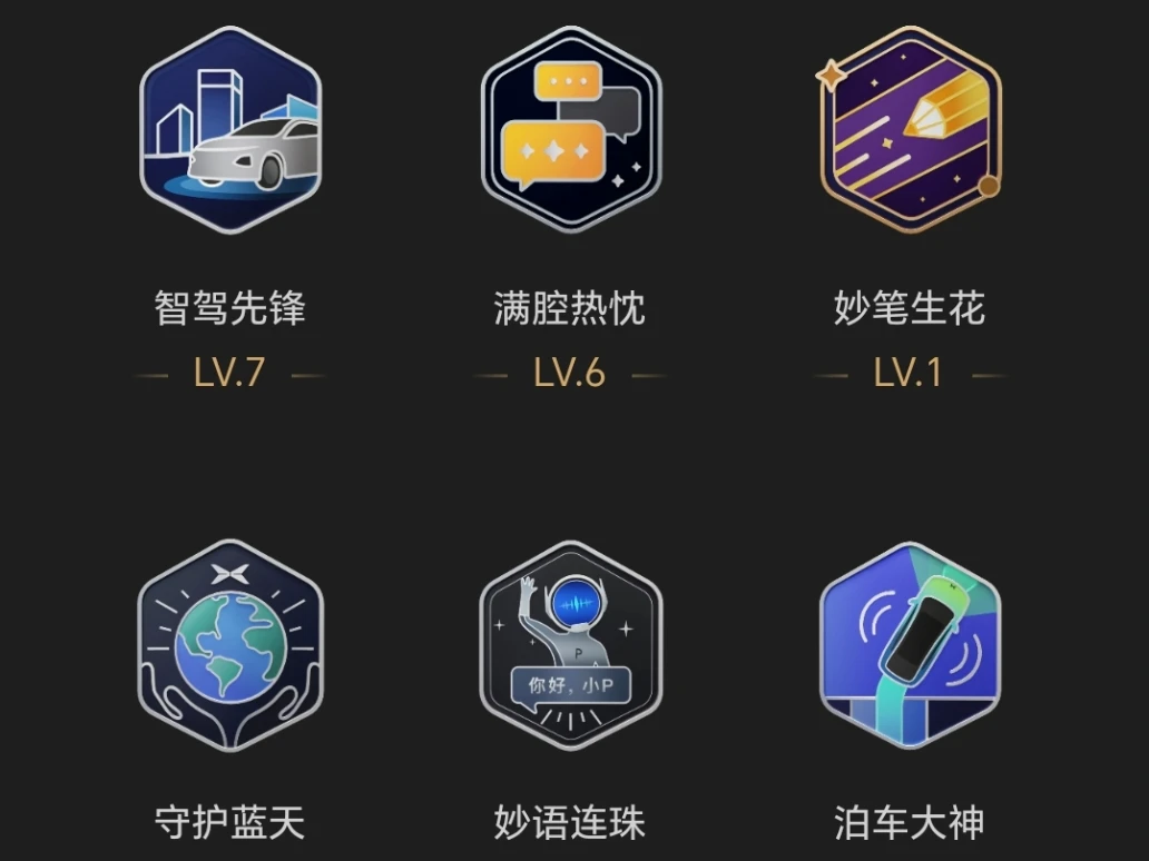 #晒晒我的勋章# 陪伴鹏友每天进步,我已经收集到了14枚勋章!最喜欢智驾勋章了,每天尽可能的感受智驾带来的方便与惊喜,小鹏智驾在最近两年里成熟了许多,感谢鹏友们!
