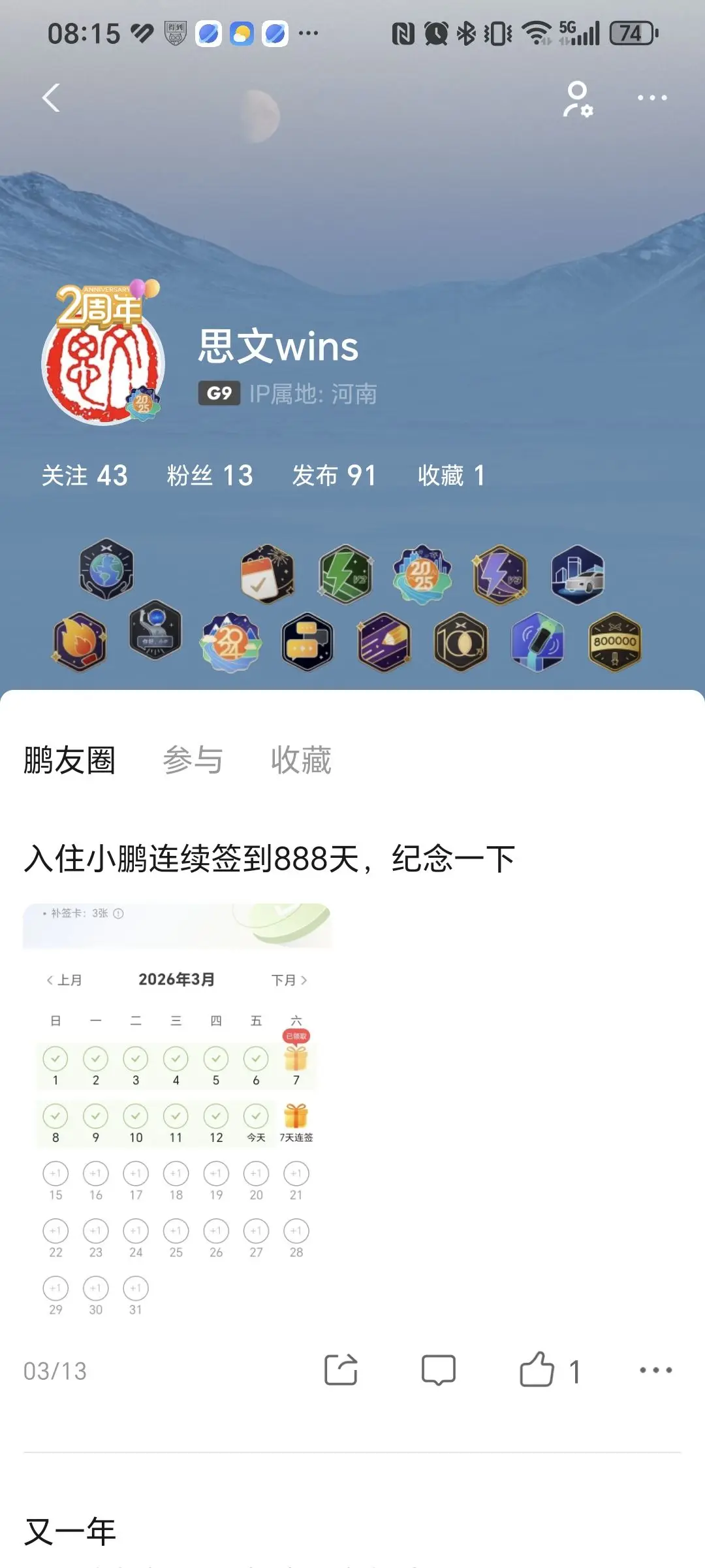 还有一点感受就是坚持!在看中G9交定金的那一天起,我就每天坚持不断的在小鹏APP打卡签到,如今已经坚持两年多了!为我自己点赞👍!希望能够继续坚持下去,三年、四年、五年……从不间断每一天。