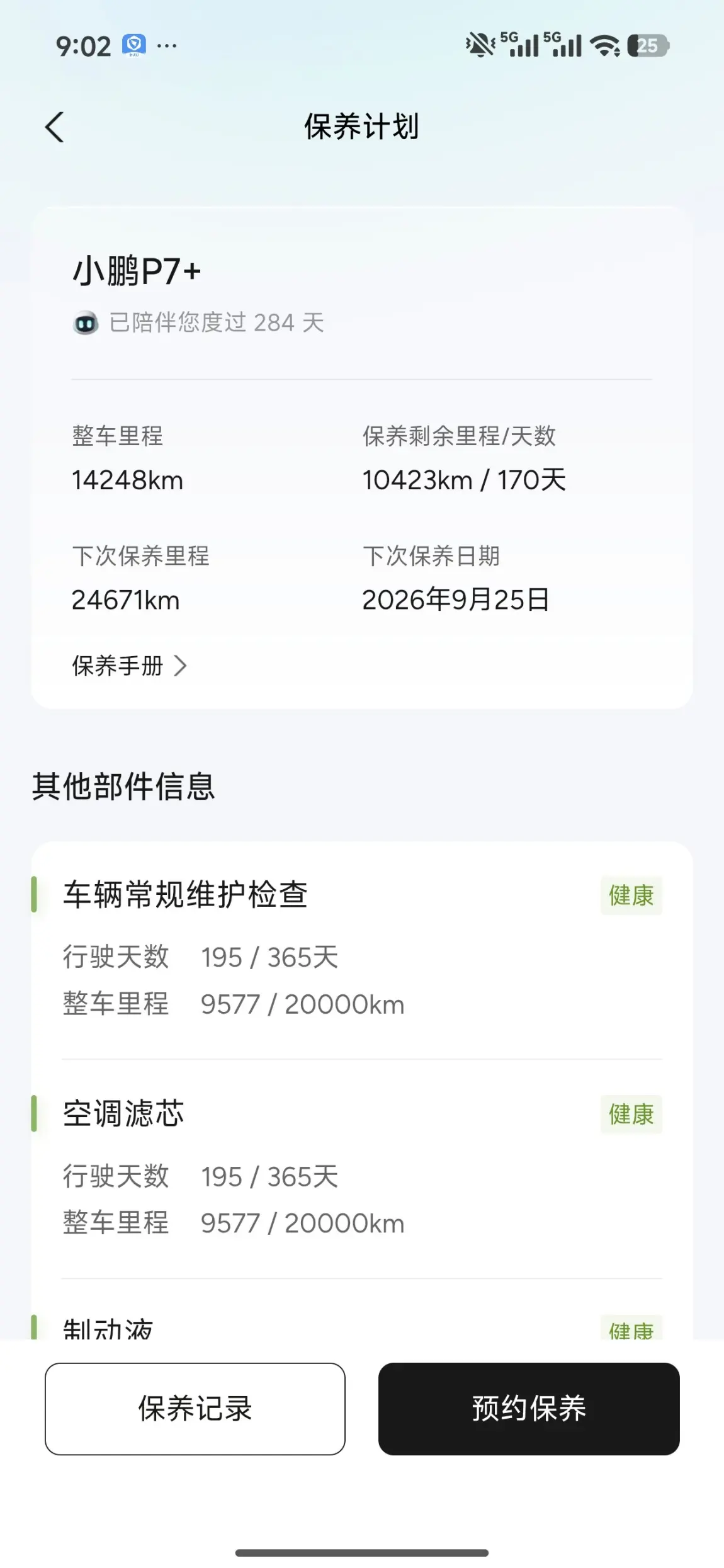 而且P7+的保养也超省心,现在14248公里,下次保养还有1万多公里、170天,日常通勤完全不用操心,用车成本直接拉满。