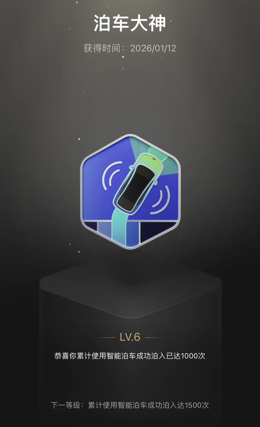 小鹏X9的离车泊入能够完美解决痛点,省心省力还安全可靠,这才是智能汽车该有的样子👍我已经使用自动泊车一千多次了,还获得了泊车大神勋章🎖️😃很让人放心👍🏻