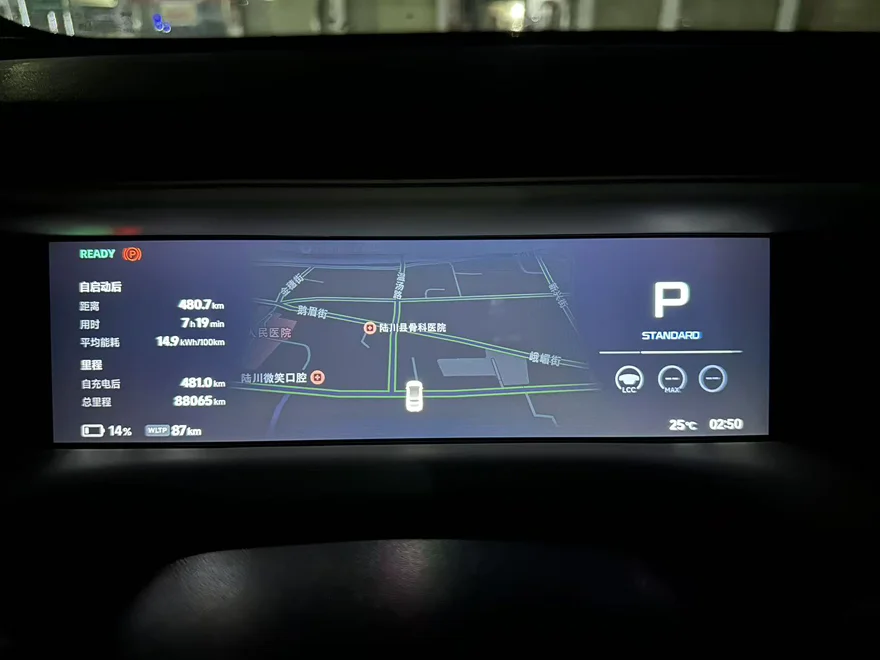 三月的一次长途,在WLTP满电630公里开始出发,经过7小时19分钟,行驶了481公里后,WLTP电量居然还剩87公里,算下来WLTP消耗543公里,续航达成率89%,在满载的情况下,能耗也仅有14.9kWh/100km,对于高速来说。这个能耗算是很低了,大部分同级大小的SUV做不到这个满载高速能耗。