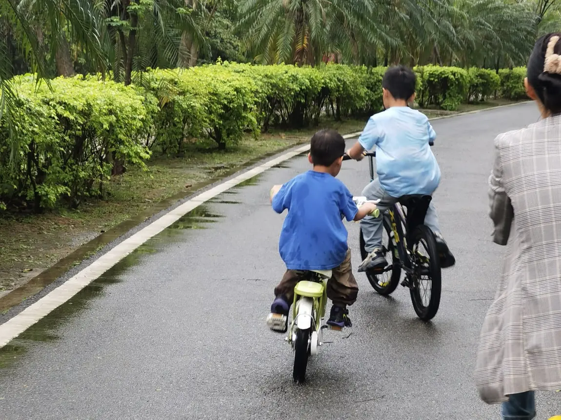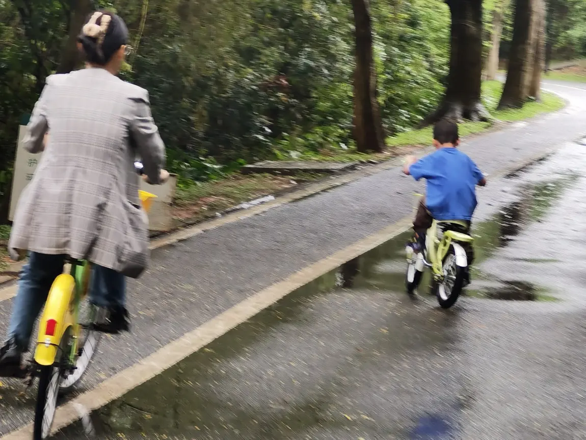 两个孩子兴奋地蹬着小自行车,在前面你追我赶,完全不在意身上被打湿的衣服。我和老婆跟在后面,一边骑行,一边欣赏着沿途的湖光山色,所有的工作压力、生活烦恼,都在这车轮滚动间烟消云散。