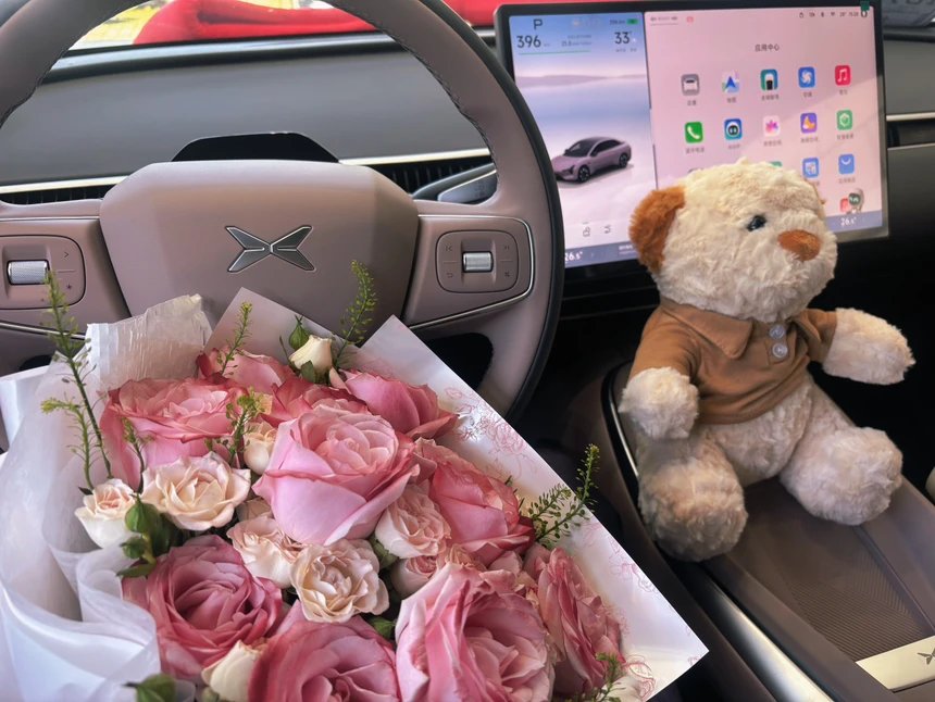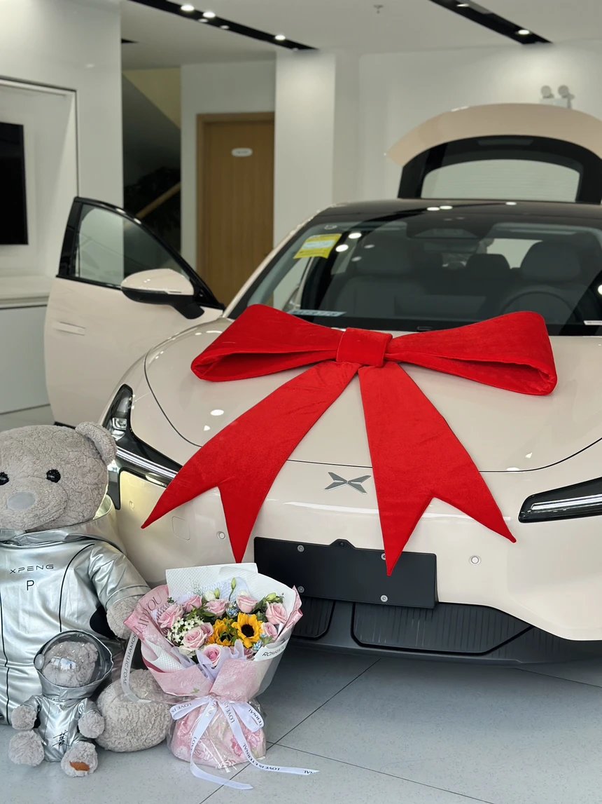 提车过程“丝滑”:交付专员一对一跟进,验车讲解超耐心,鲜花礼炮交车牌仪式感拉满。新车满电、胎压调好,送小熊+定制钥匙套+脚垫+行车记录仪卡,到手即用。