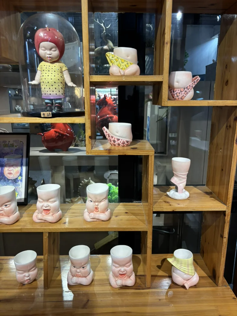 陶溪川有各种各样的摊贩工作室,瓷器作品,确实是很好看,价格也确实是贵