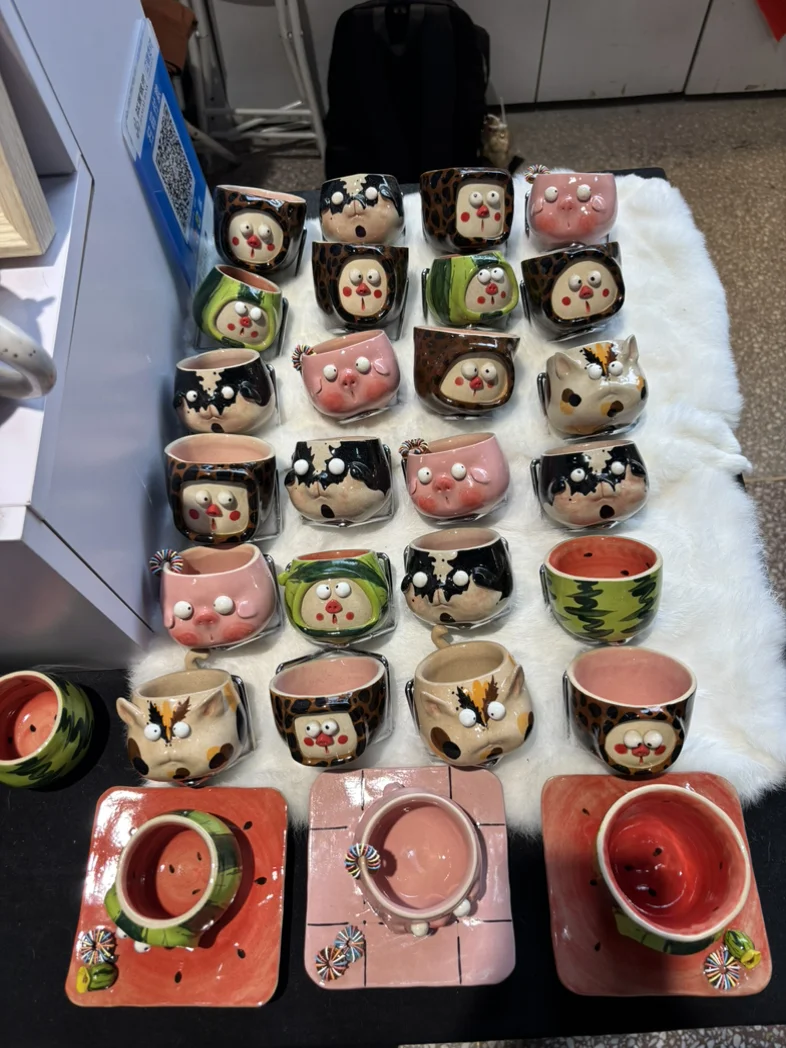 做工作室,自己捏作品,自己烧 出来摆摊,都是原创的,确实各个摊位的作品基本都看不到雷同的,看起来也确实是原创
