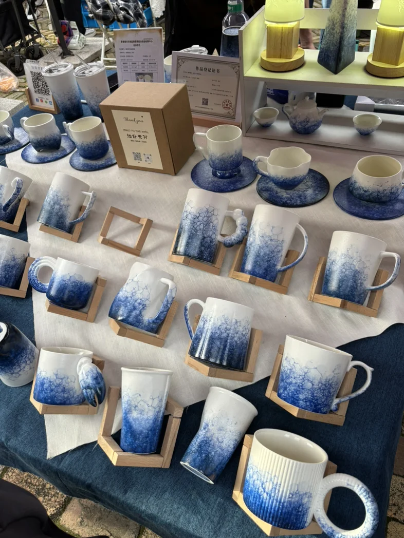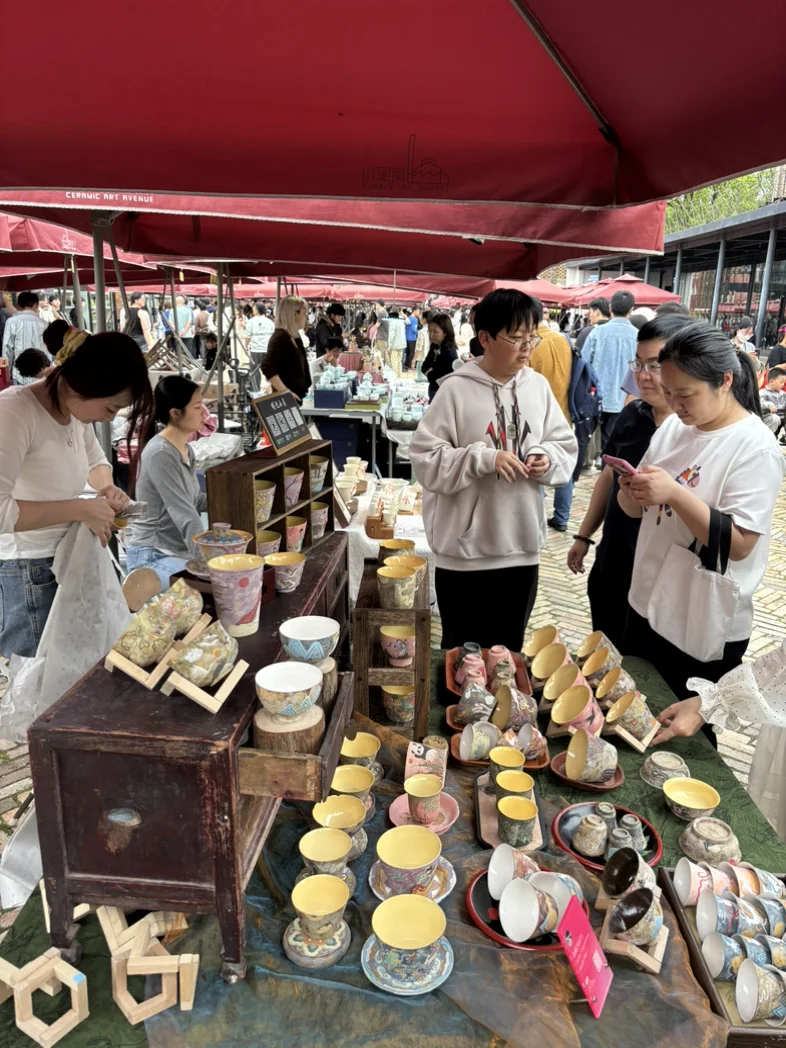 这些摊位有各种各样的风格瓷器,他们说自己很多事景德镇陶瓷大学的学生毕业后