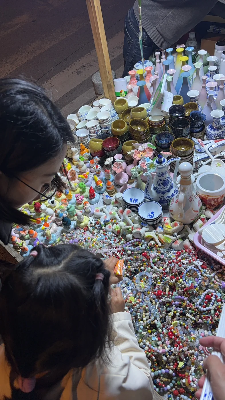 在小摊位上淘点手链和一捆陶瓷筷子,之前同事说陶瓷筷子好用,带回去试试