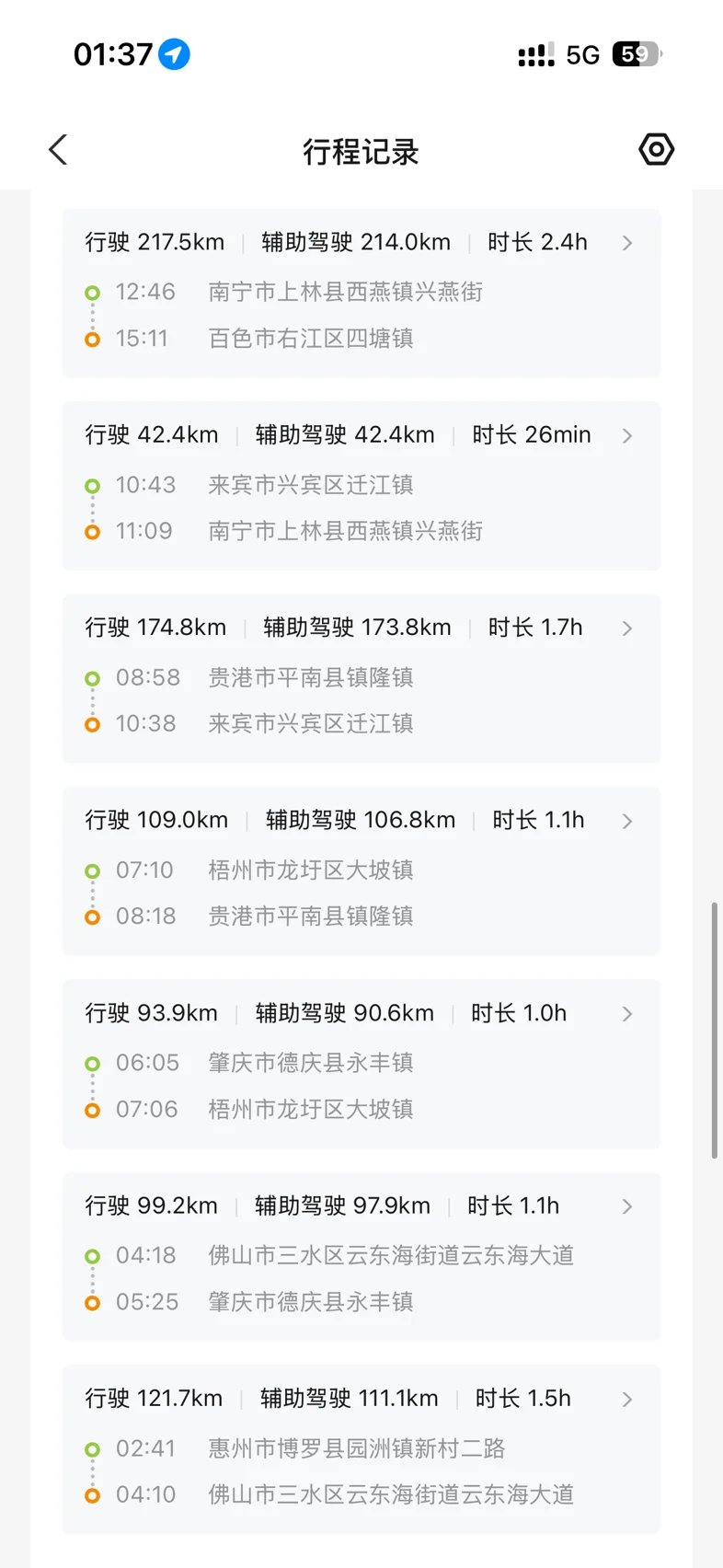 百色到安龙223.5公里,辅助驾驶222.7公里!