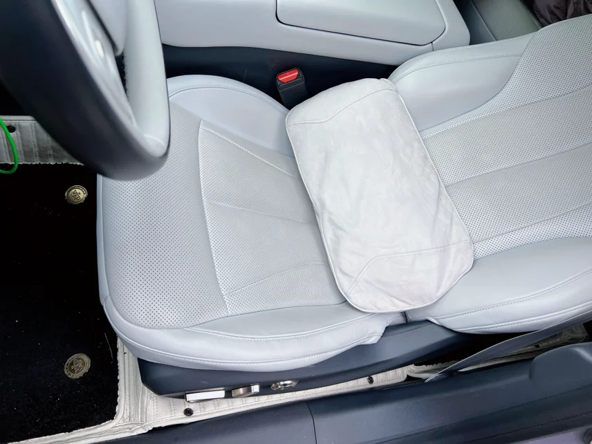 中午十二点半,吃完午饭回到车里。午休时间,停车场很安静。我把座椅调到最后,靠背缓缓放倒,整个人陷进宽大的Nappa真皮座椅里。打开按摩功能,轻柔的力道从腰部蔓延到肩背。“小p,放一首适合午睡的轻音乐。”