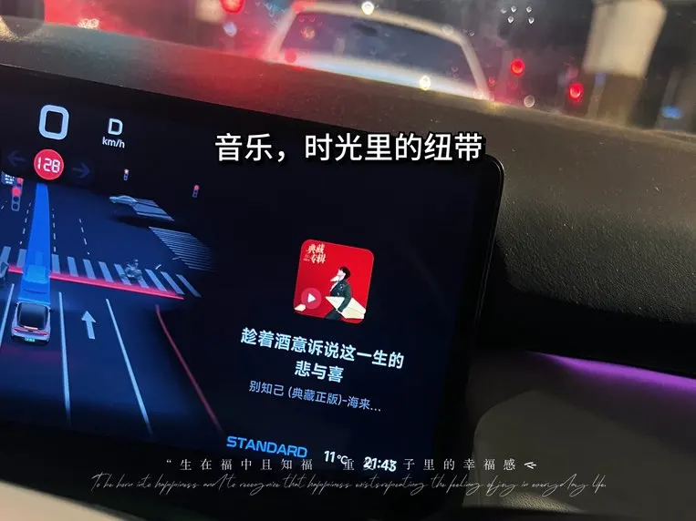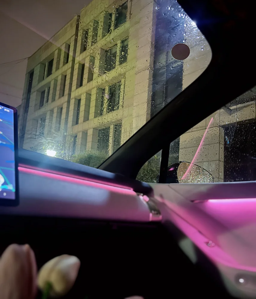 “小p,放一些轻音乐,我要休息一下。”这个时候,我通常会把座椅完全放平,躺在车里。车内柔和的氛围灯亮起,淡淡的光晕让空间显得很温馨。音乐缓缓响起,可能是大提琴独奏,低沉而舒缓;也可能是自然采样音乐,有海浪声、雨声、风吹过森林的声音。