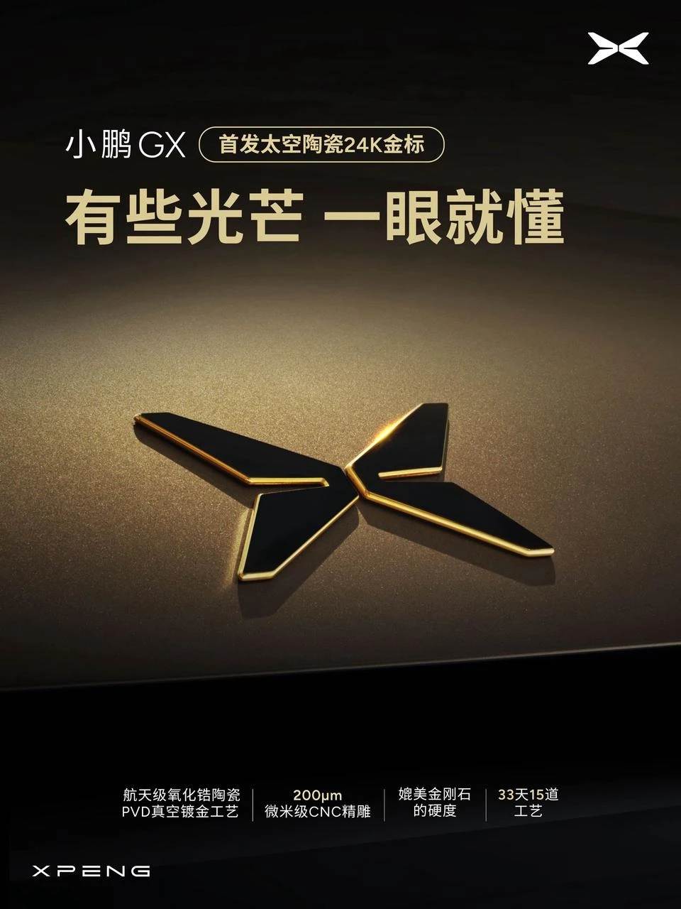 小鹏GX 首发「太空陶瓷24K金标」,旗舰专属,铭刻非凡。