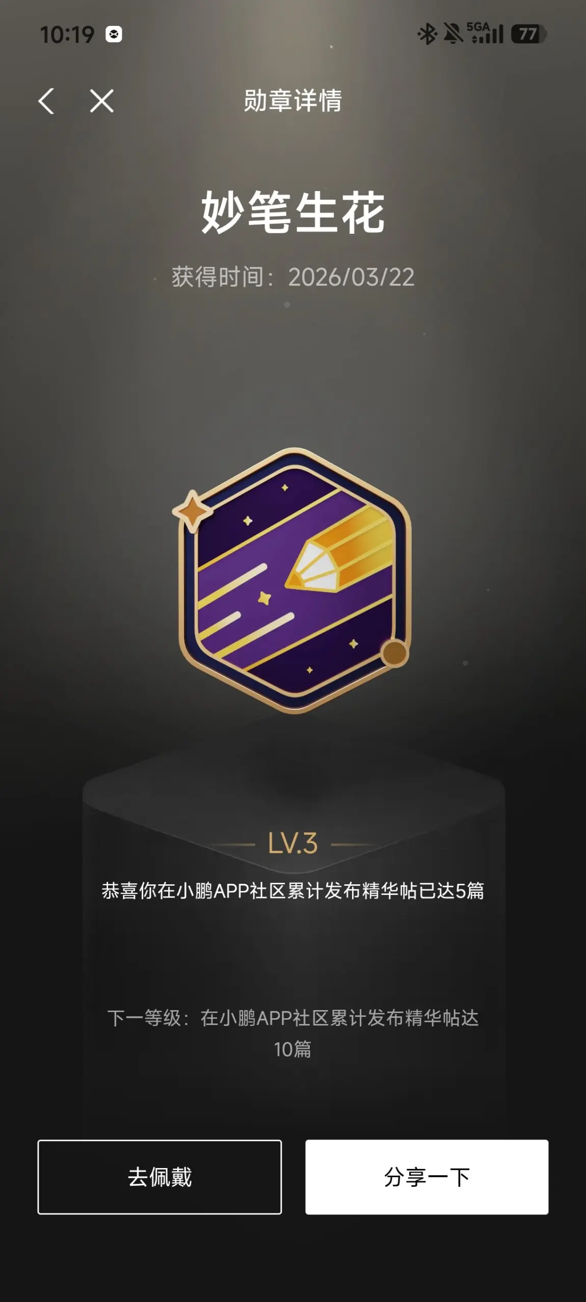 👉👈当下目标:【妙笔生花】,传递鹏友热爱。17枚勋章是过往成就,【妙笔生花】则是我当下的努力方向。看着鹏友圈的精品帖,我也开始打磨内容,记录用车点滴、分享智驾技巧,希望早日解锁勋章,用文字传递热爱、陪伴鹏友成长。