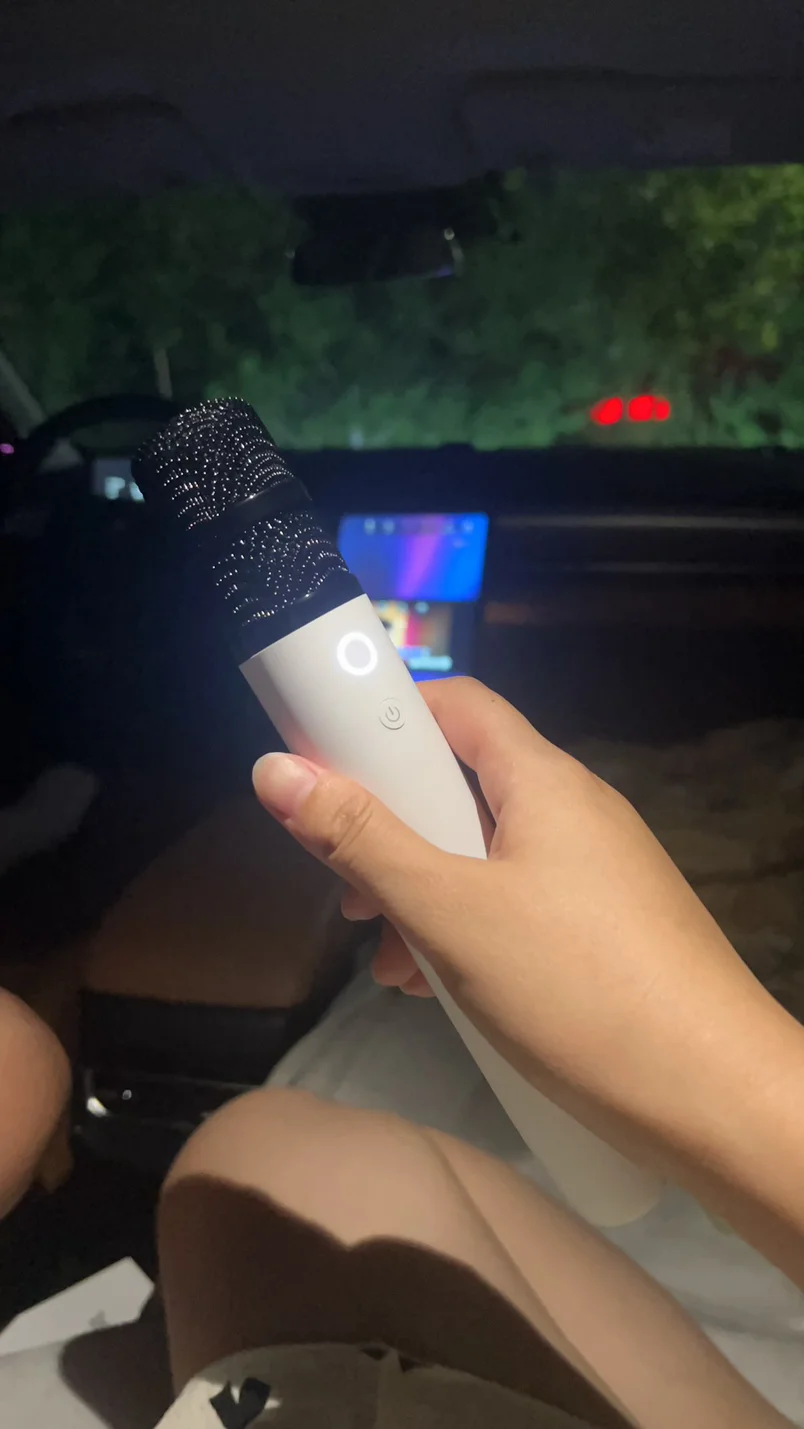 🎤我和老公总爱找一个下雨的晚上出去找个空旷的停车场在车里唱K,麦克风真的是我的车里扶手箱常备物品啦!