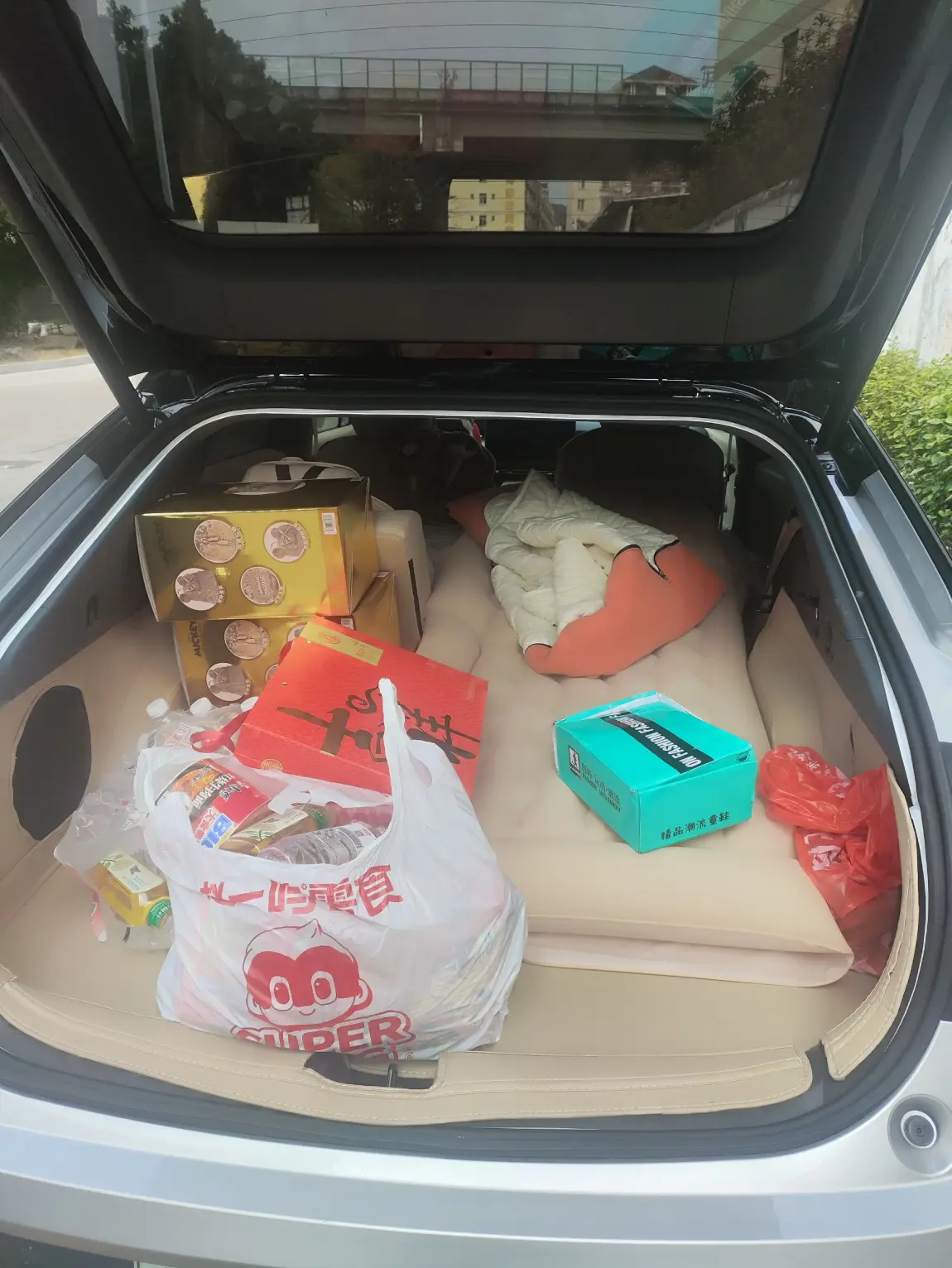 不得不说小鹏p7+的溜背造型后备箱空间很大。而且就算是女性车主也方便取拿东西,真的很实用。