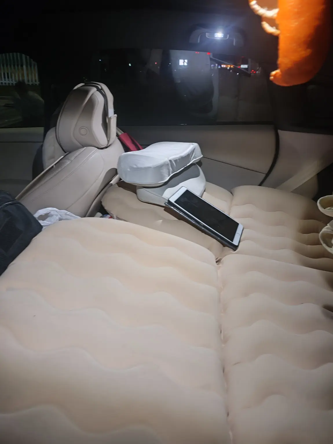 如果说后备箱是我的“百宝箱”,那后排座椅放倒后铺上的充气床,就是我的“移动卧室”。