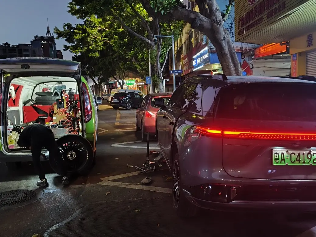 小鹏G9在郊外遇扎钉,傍晚时段仍免费上门补胎太暖心!