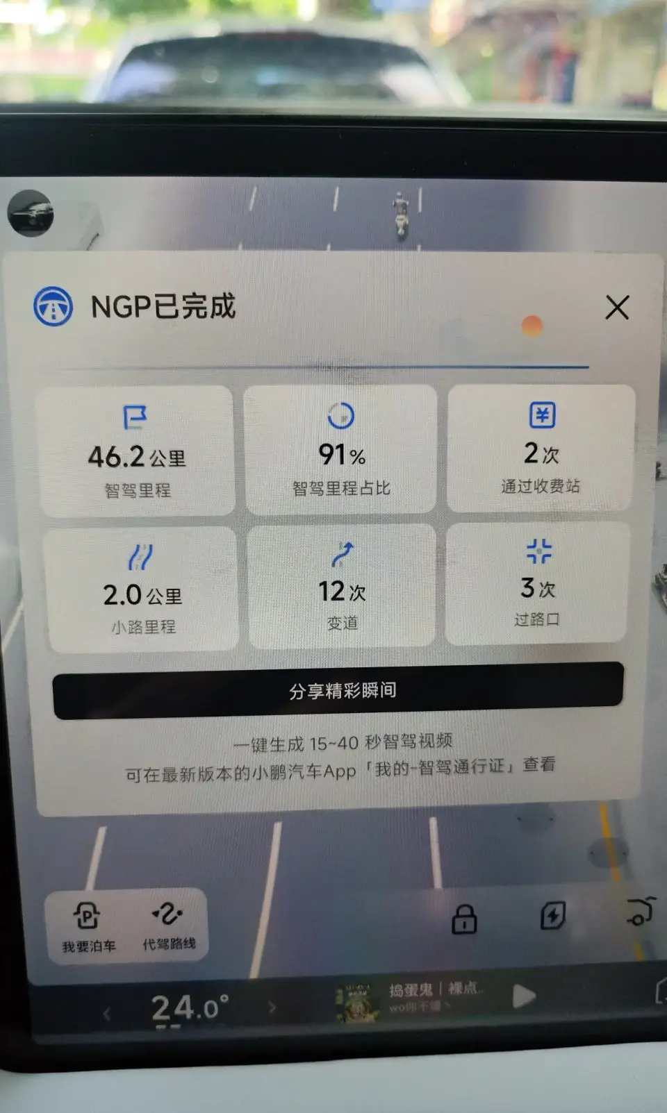 周末开着我的小鹏G9到南沙郊外游玩,从番禺区到南沙区为快速路,路程约46km,智驾占比91%,轻松到达!智驾自动选择高速入口ETC通道并从容通过闸口实在是太酷啦!
